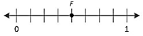 A fraction is represented by point F on the number line.