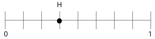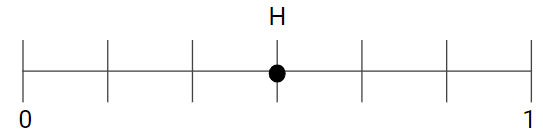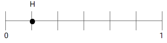 Point F and point H are shown on two equivalent number lines.