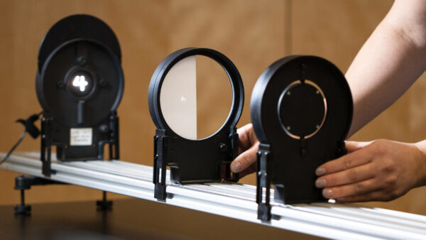 This lens lab uses the Vernier Optics Expansion kit (https://www.vernier.com/product/optics-expansion-kit/) and the Vernier Combination Track/Optics Bench (https://www.vernier.com/product/combination-1-2-m-track-optics-bench/)