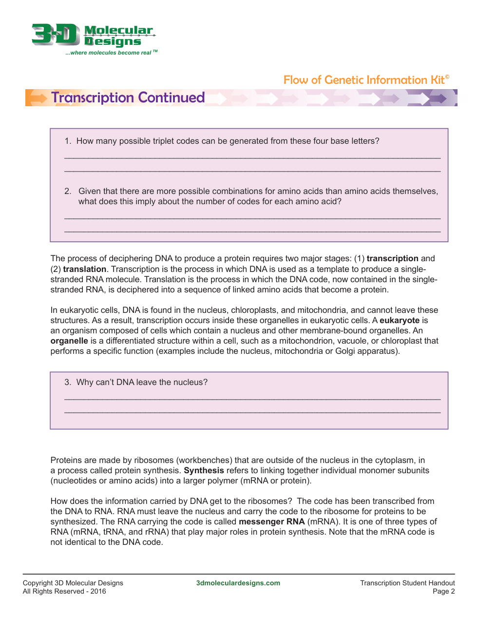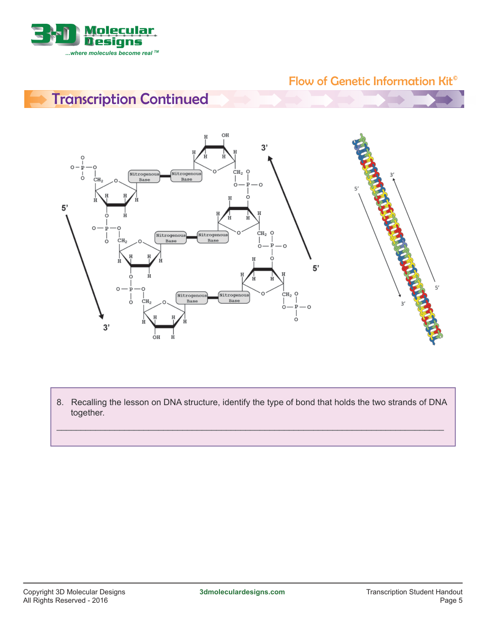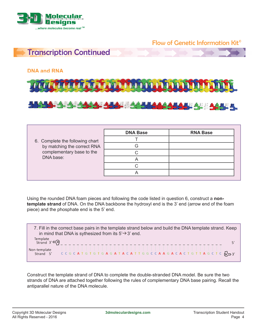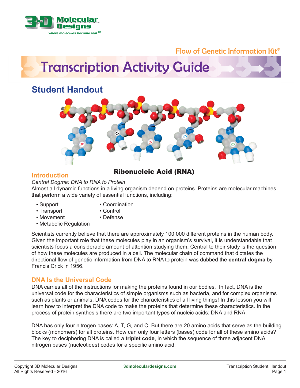 Transcription Activity (Flow of Genetic Information Kit)
