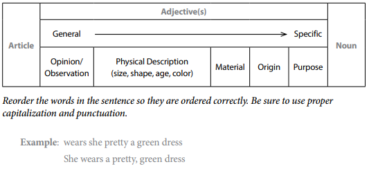 Write a sentence using at least two adjectives and an article. Be sure to order the words appropriately and to use proper capitalization and punctuation.