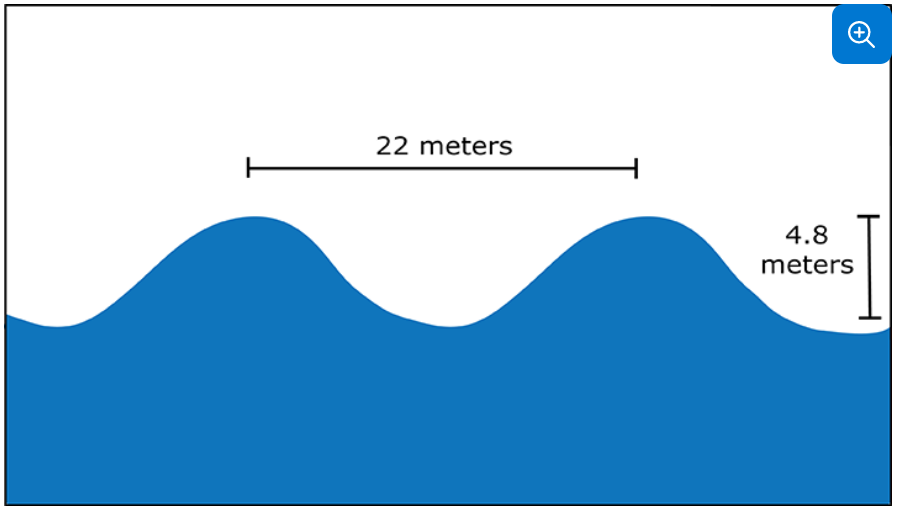 Supposing you are sitting on a dock observing uniform waves that hit shore every 5.5s, the wave height would be____________________.