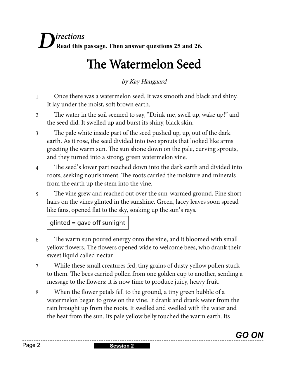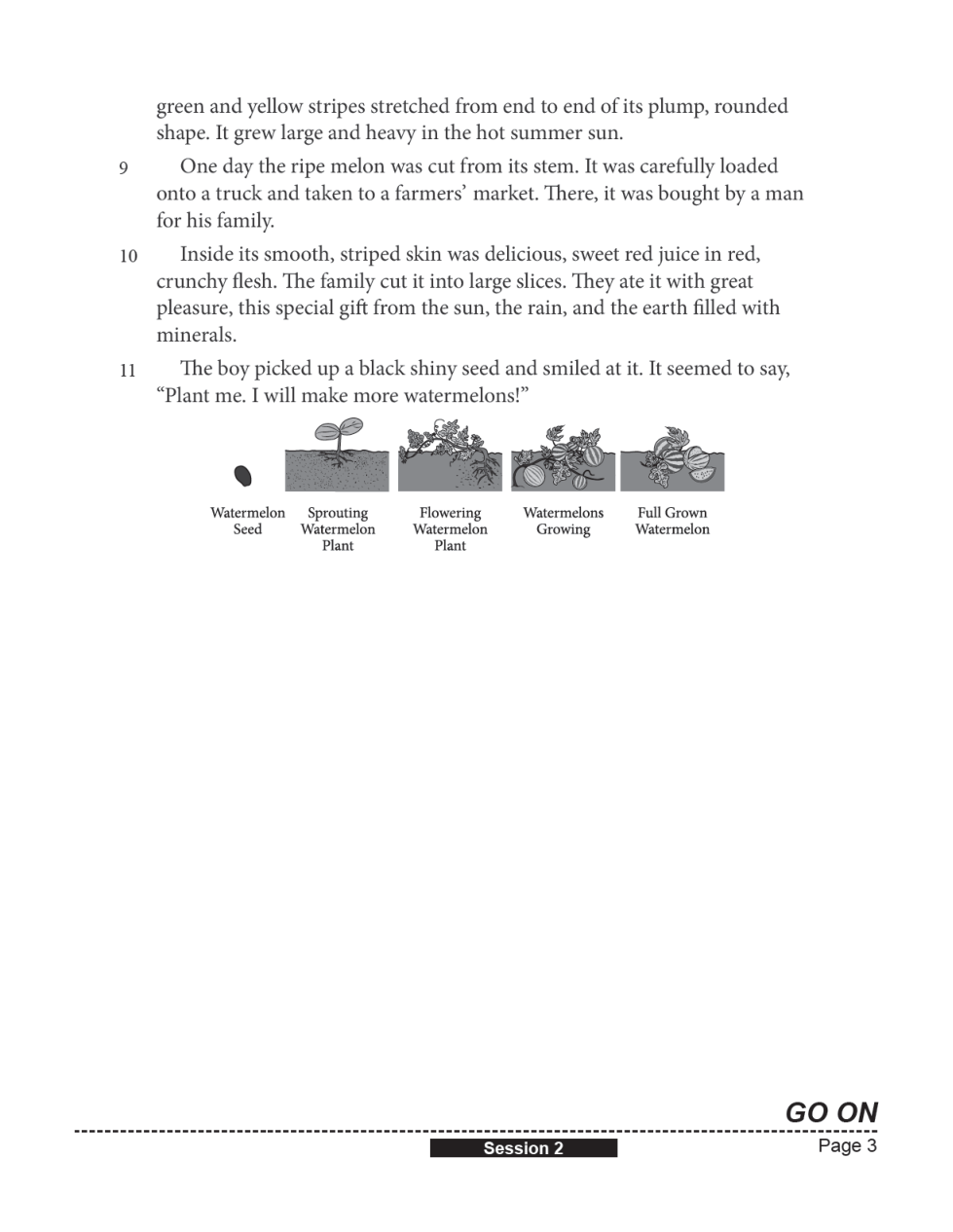 What do paragraphs 9 through 11 of “The Watermelon Seed” show about growing new watermelons? Use two details from the passage to support your response.
