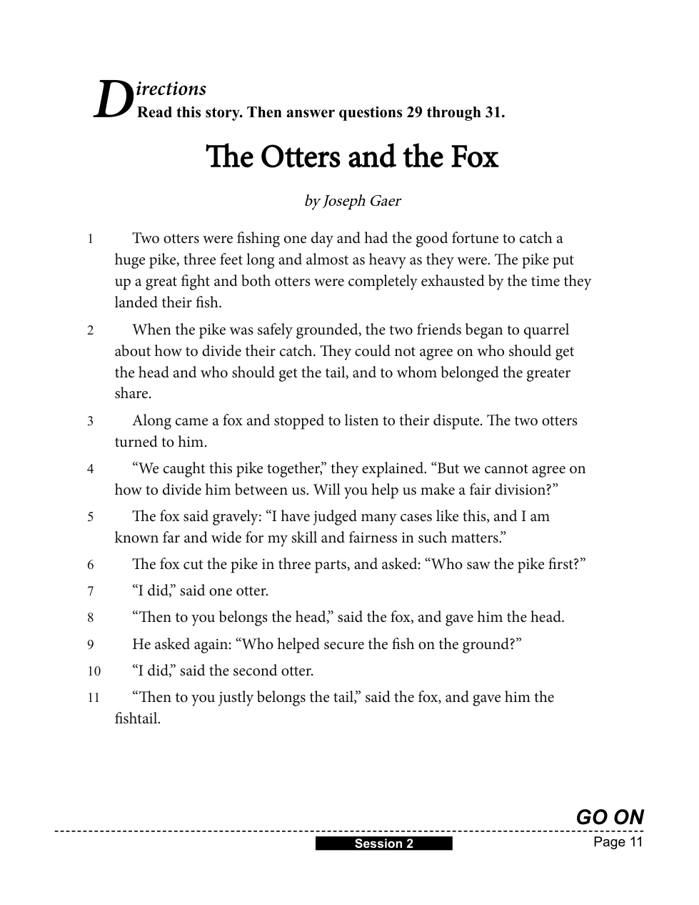 What does the fox think about himself in “The Otters and the Fox”? Use two details from the story to support your response.