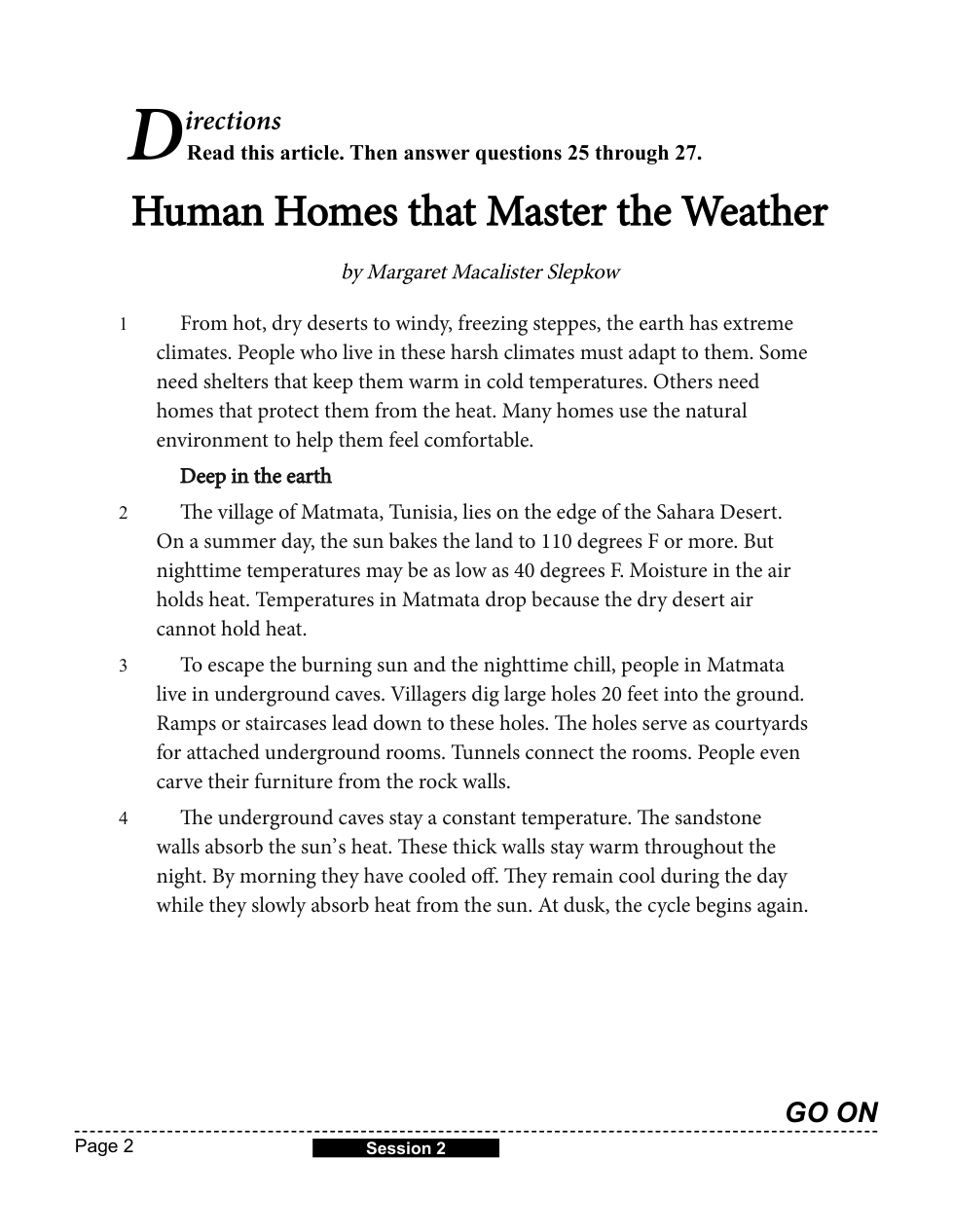 Read this sentence from paragraph 6 of “Human Homes that Master the Weather.”