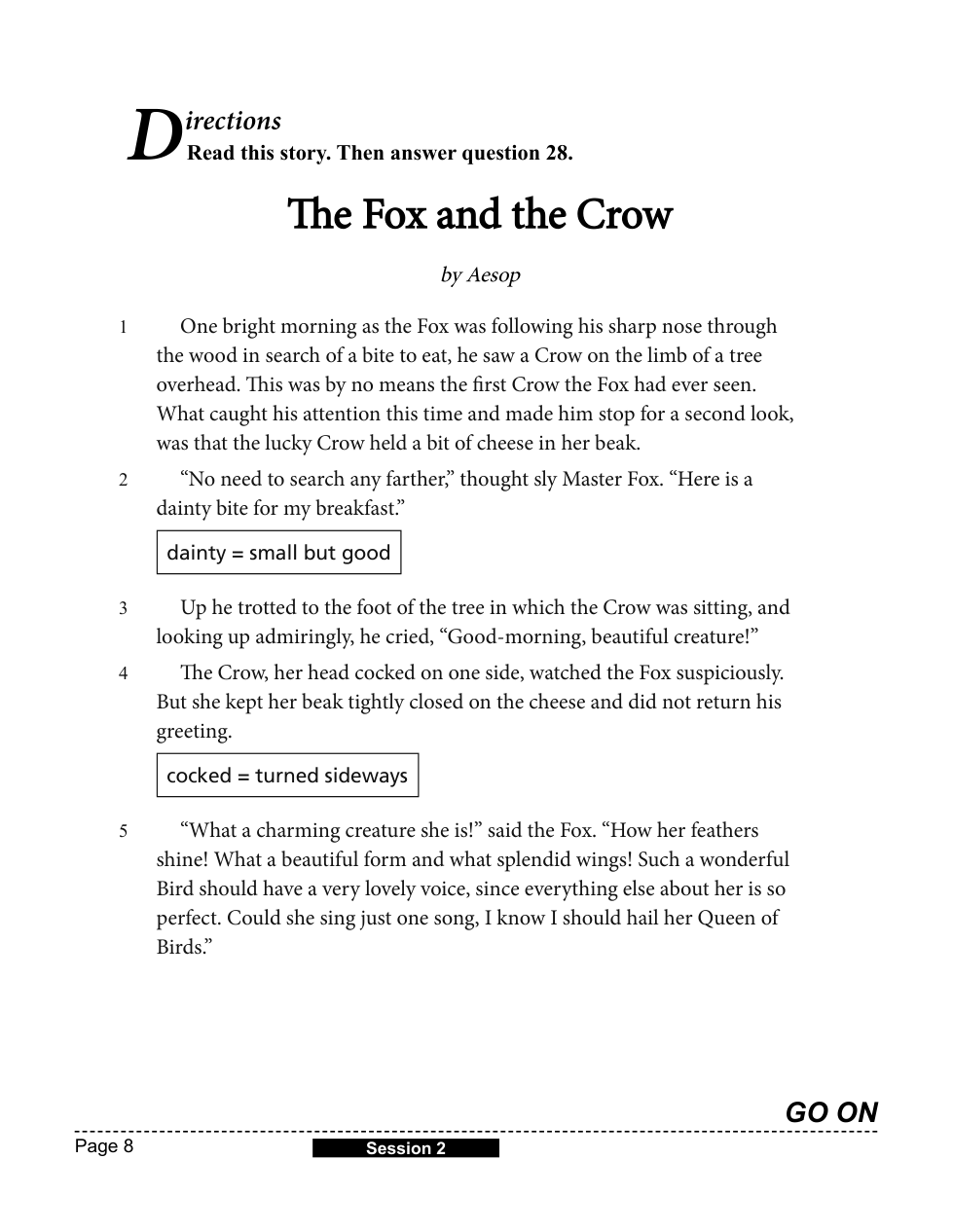 How does the information in paragraph 1 of “The Fox and the Crow” help the reader’s understanding of the rest of the story? Use two details from the story to support your response.