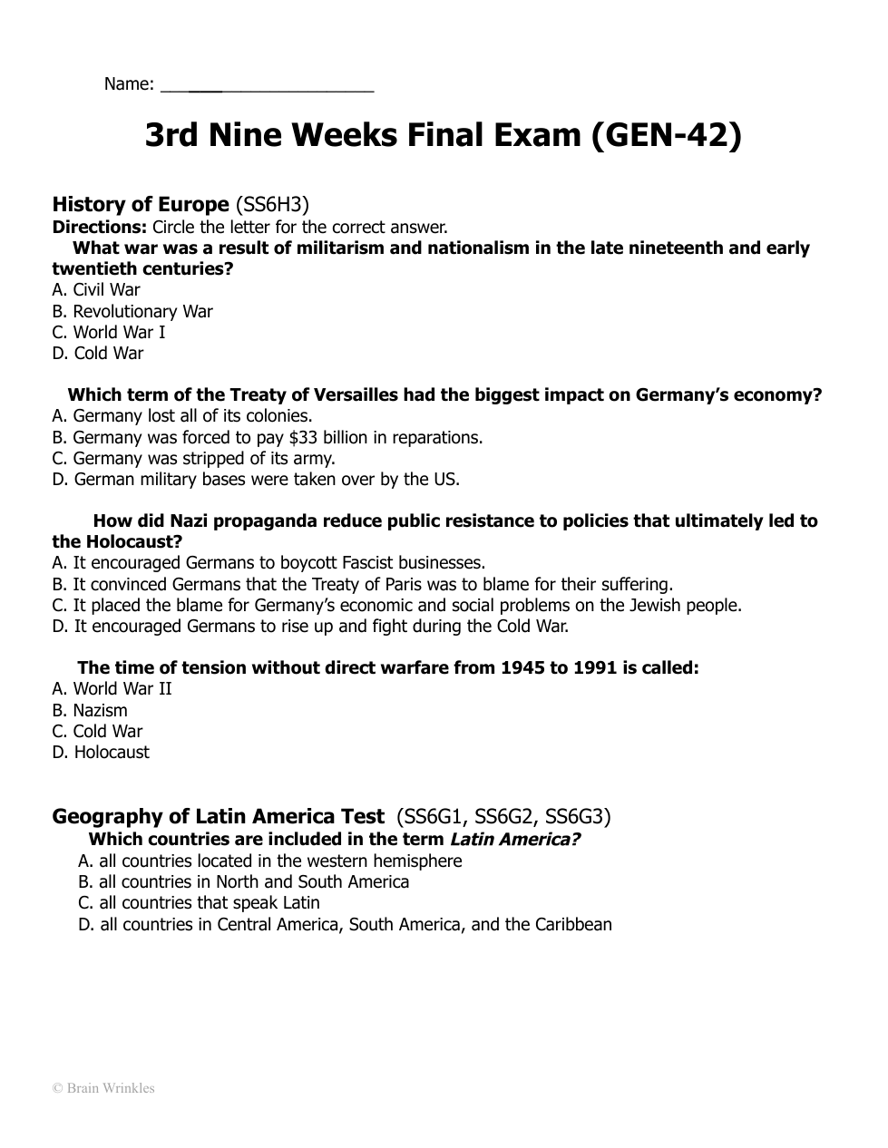 EMS - 2023 3rd Nine Weeks Social Studies 6 Final Exam (GEN)