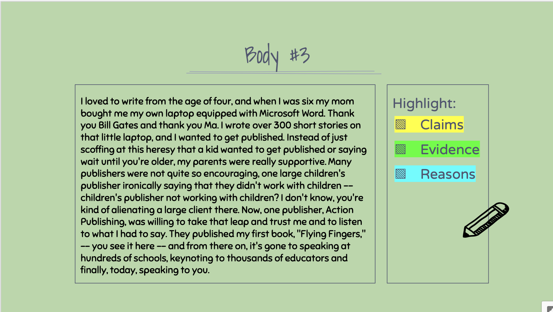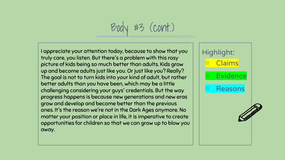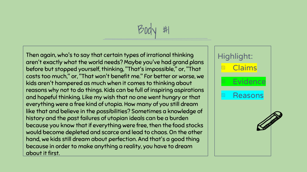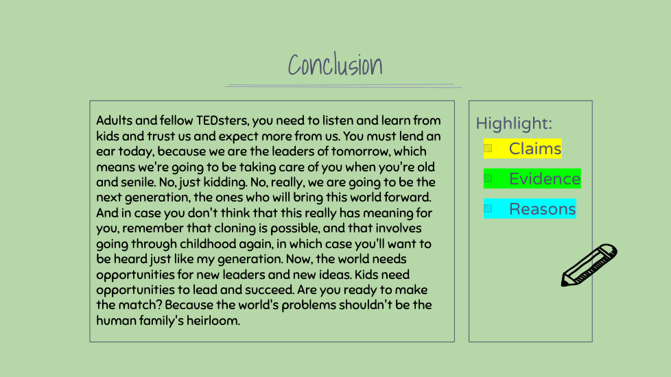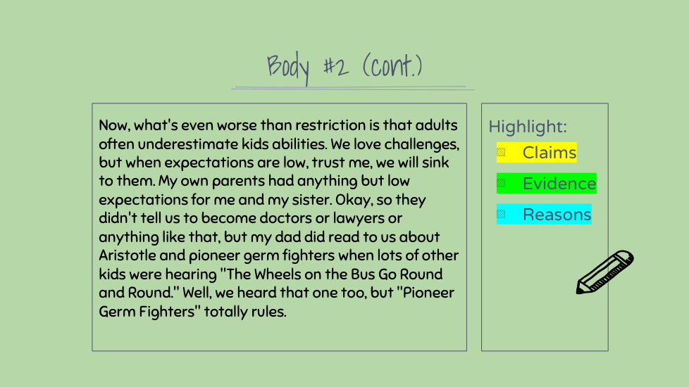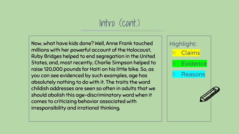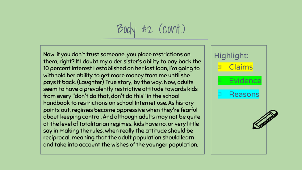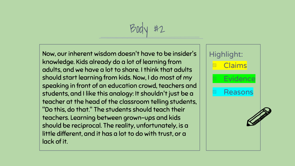 Highlight the claims, evidence, and reasons in this section. (There might not be all three)