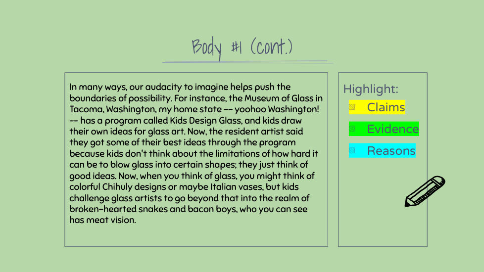 What are 2-3 reasons she gives in support of her claim? (review your highlights!)