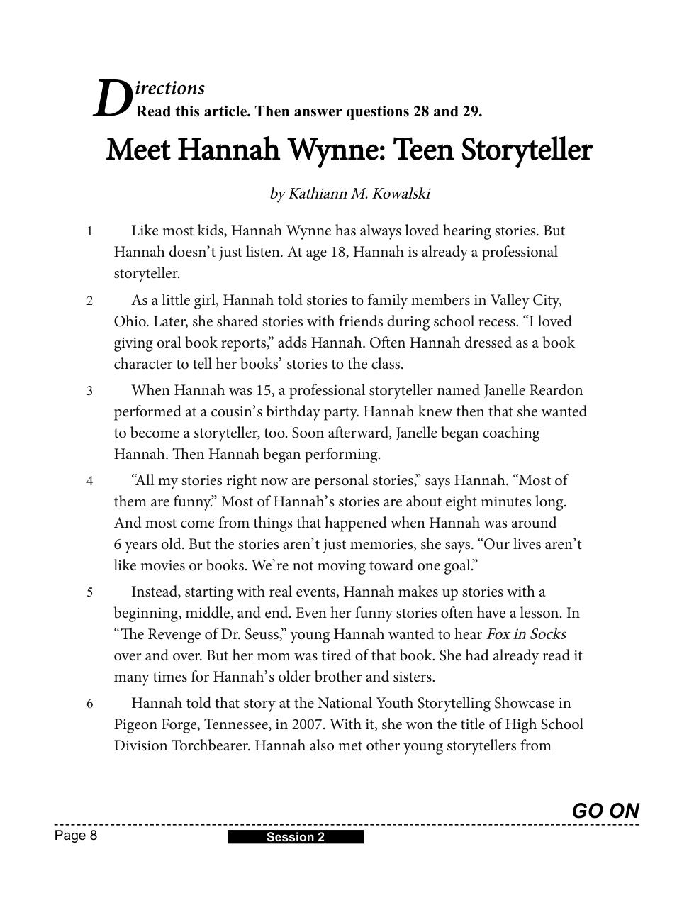 According to the article “Meet Hannah Wynne: Teen Storyteller,” what kind of person isHannah? Use two details from the article to support your response.