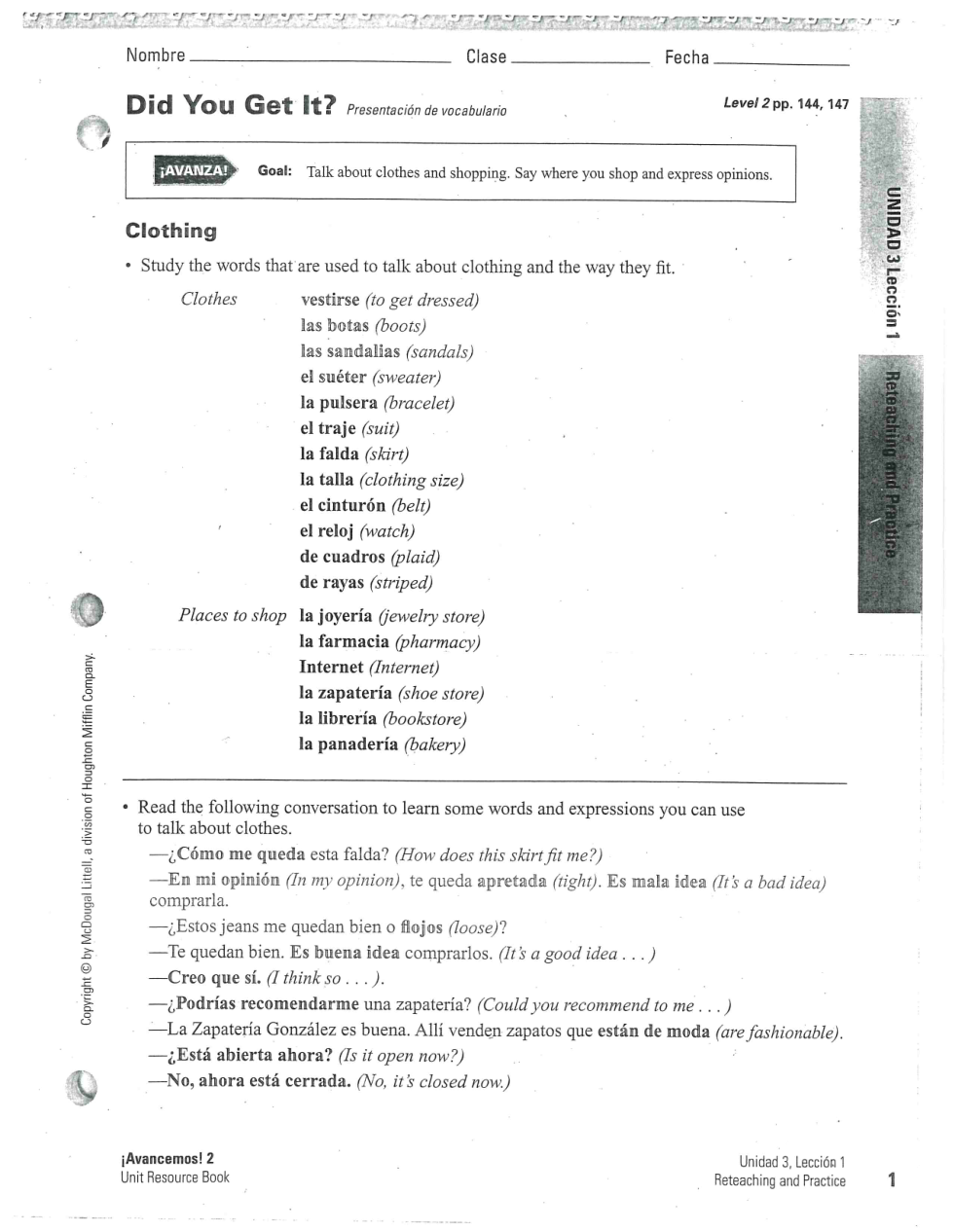 There isn't anything to do on the first page, it's here as a reference for seeing how some of the vocab is used in context.