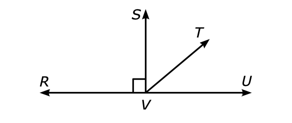 RVU is a straight line and ∠TVU has a measure of 40° in this figure.