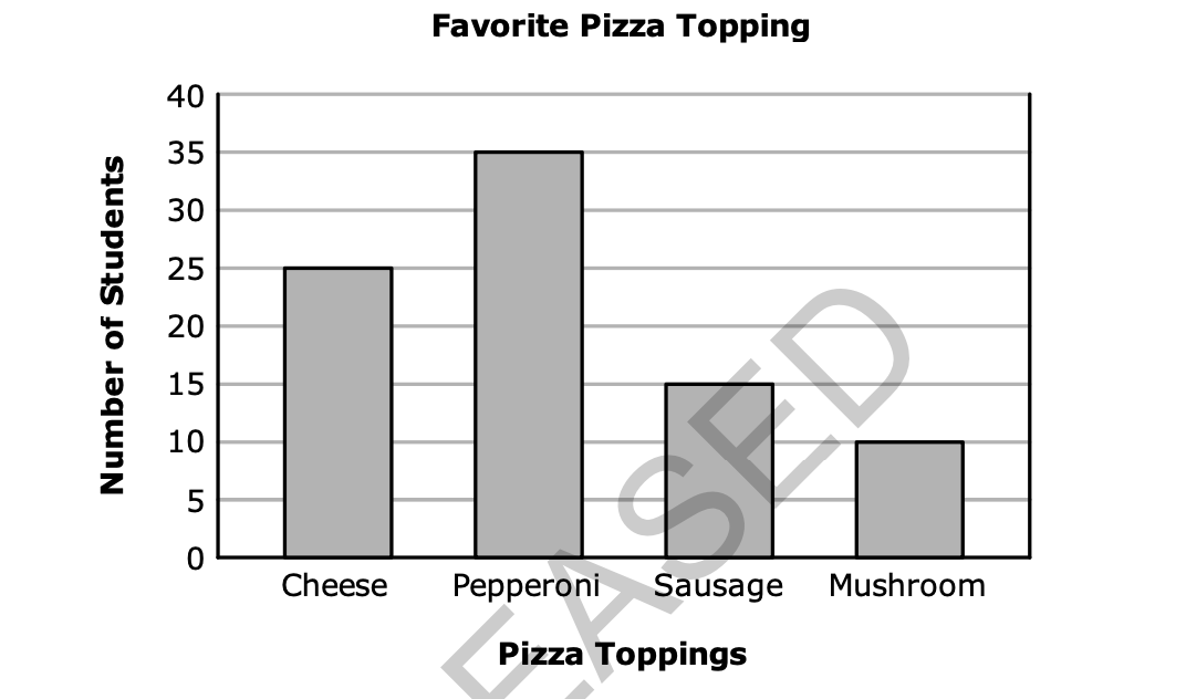 Fourth-grade students were surveyed about their favorite pizza topping. Thisgraph shows the results.
