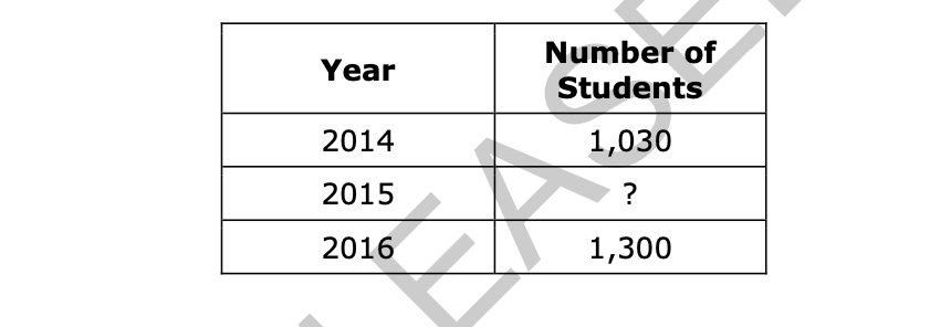 In 2015, there were more students than in 2014 but fewer than in 2016. Which could be the number of students in 2015?