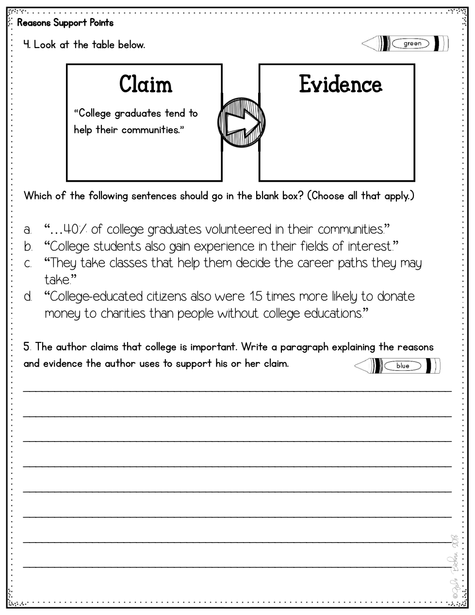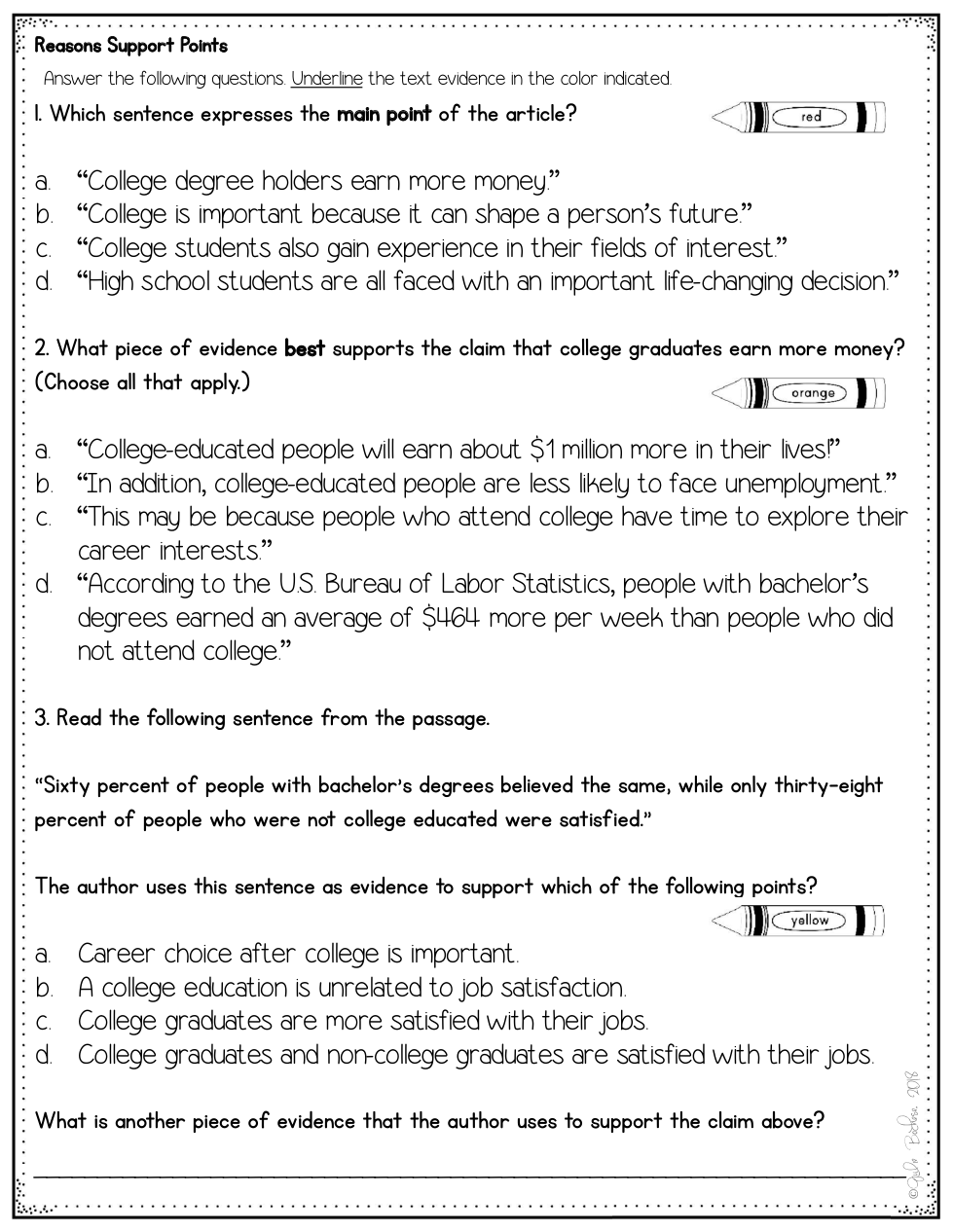 Tell me the 3 reasons the author provides to support their perspective. (THINK- The author thinks college is important because...).