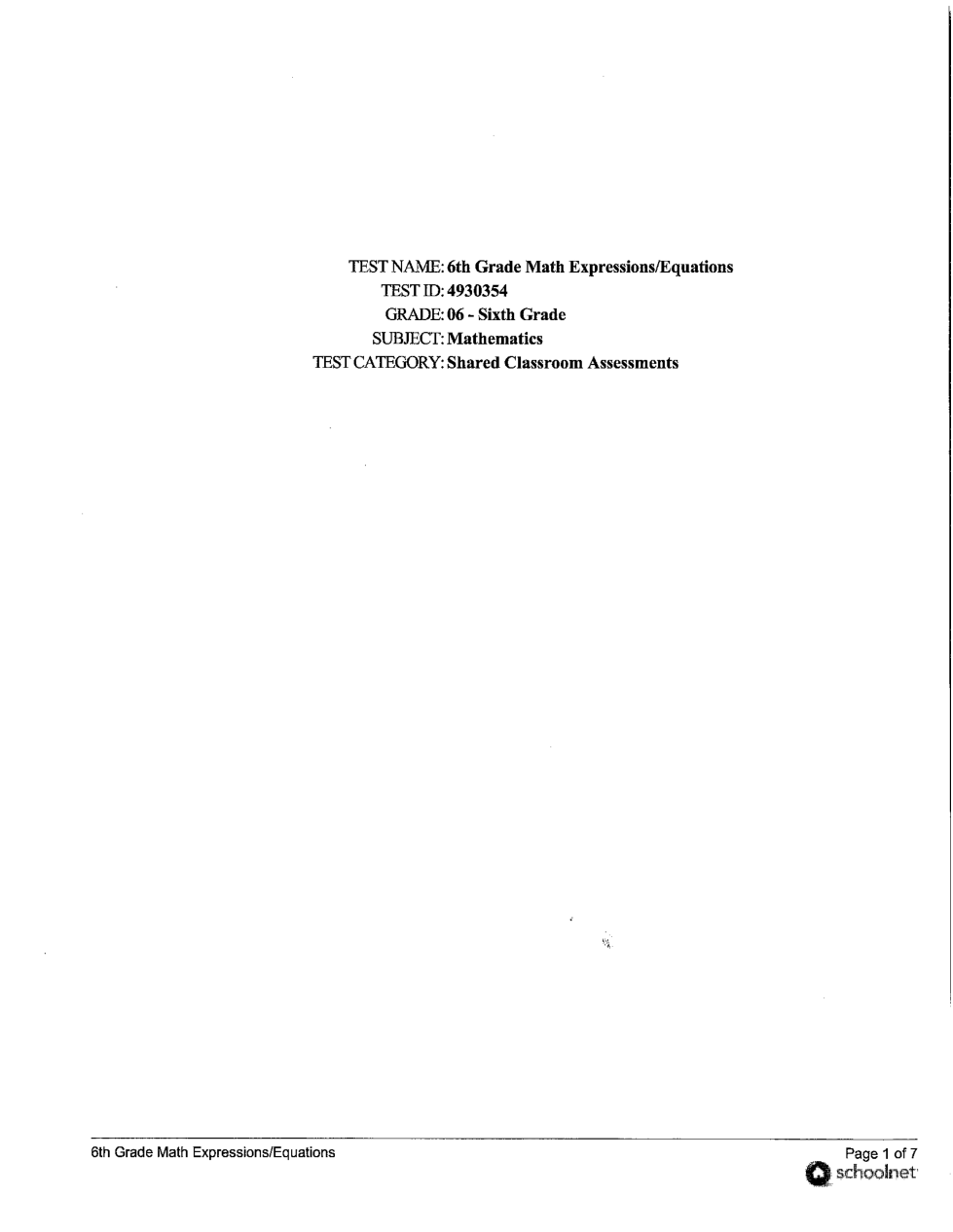 6th Grade Math EE1-9