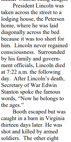 2. Directions: After completing the guided notes, read the story of Lincoln's assassination aloud with your group.