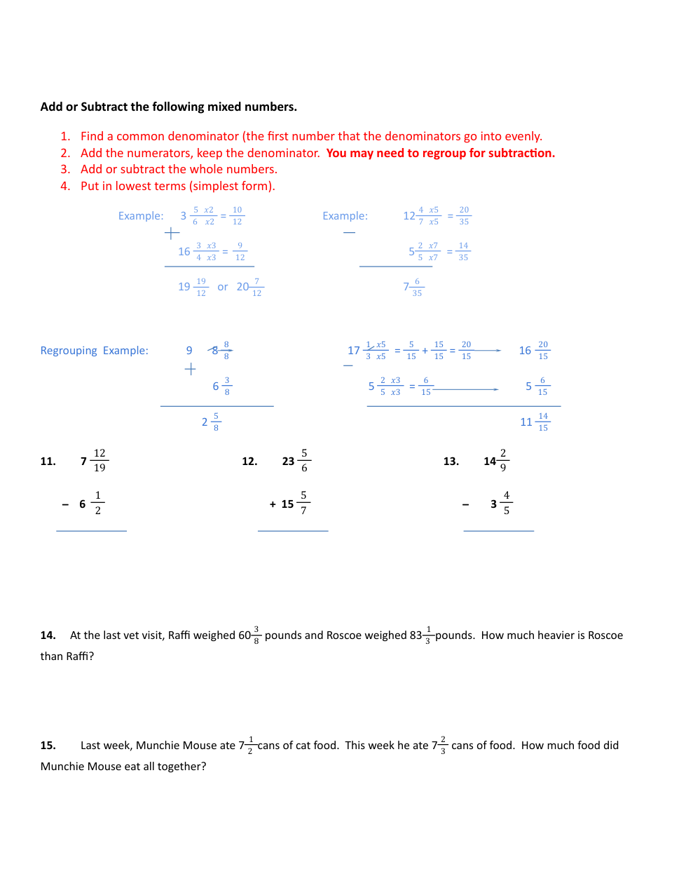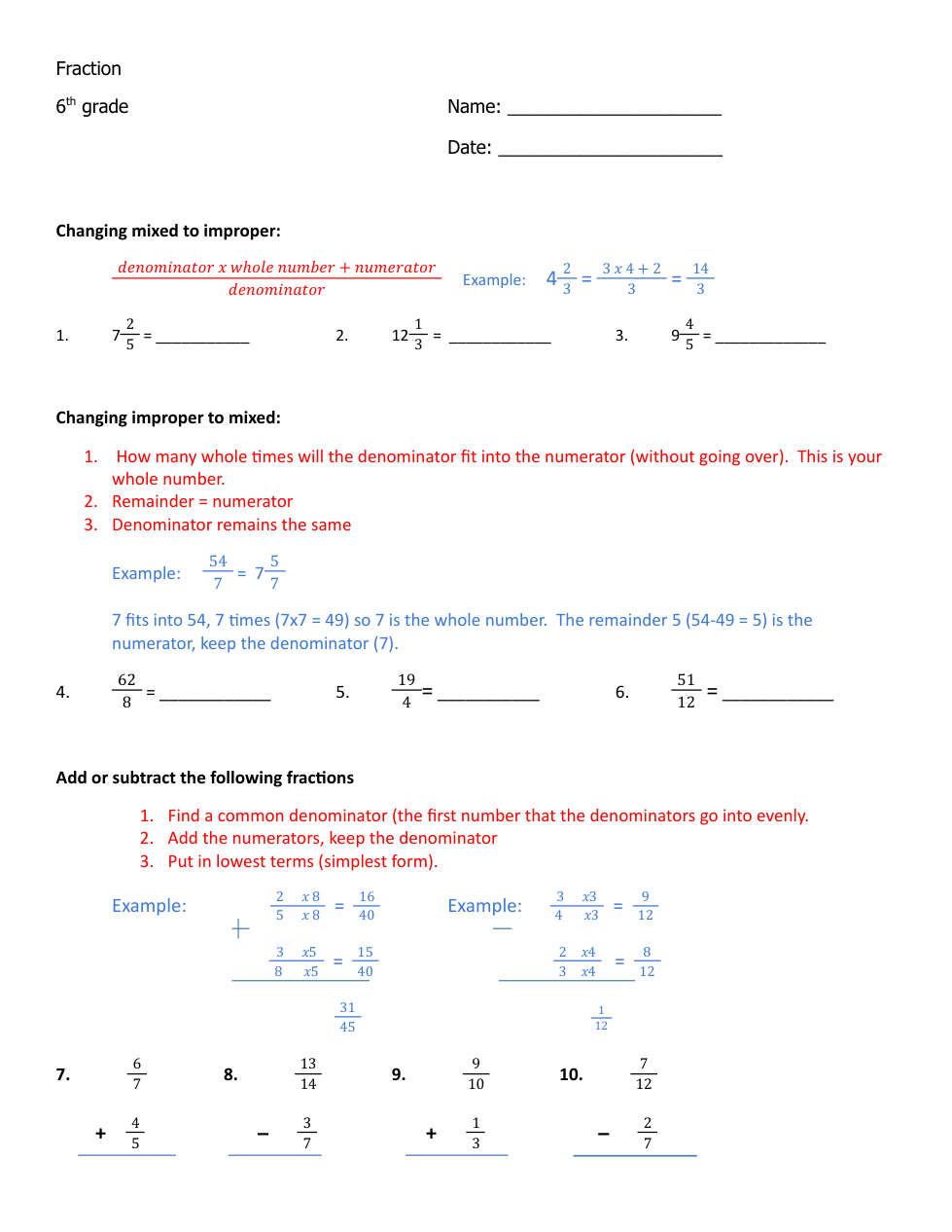Add and Sub fraction Review