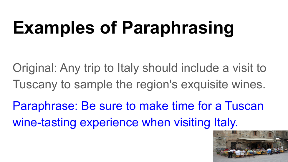Read the two paraphrases of the original text below. Select the statement that describes the most appropriate paraphrase.