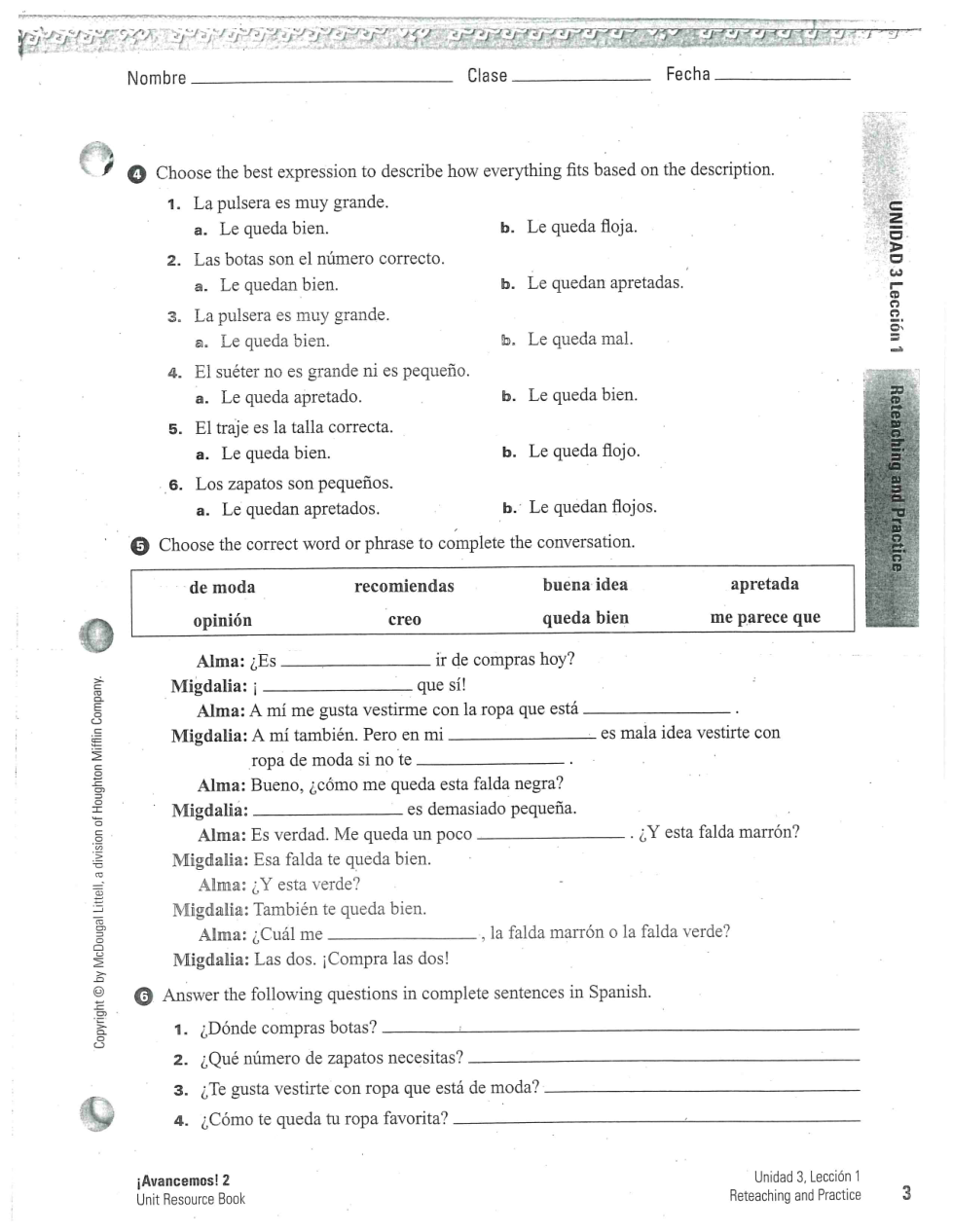 Mi ropa favorita me queda _______ . (hint: make sure your adjective agrees with la ropa)