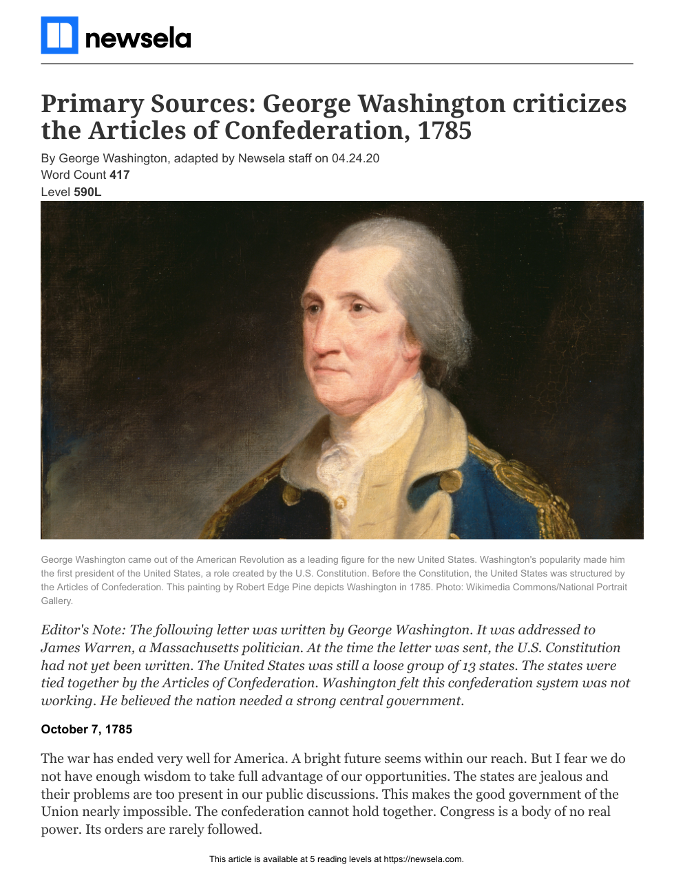 Which of the following quotes implies Washington's perspective of the new government? (THINK-Which choice shows us how Washington feels about the new US Government?)