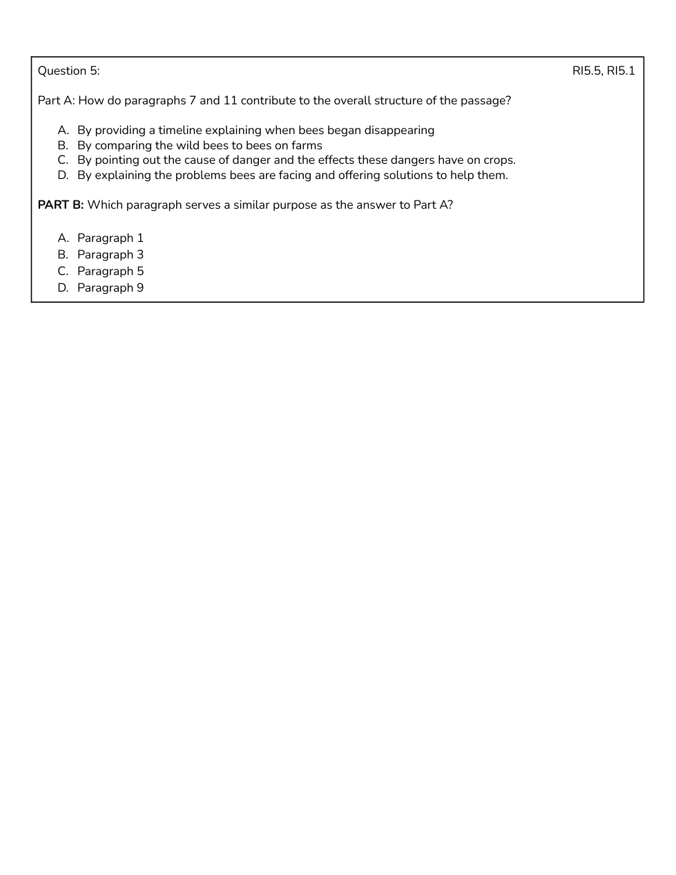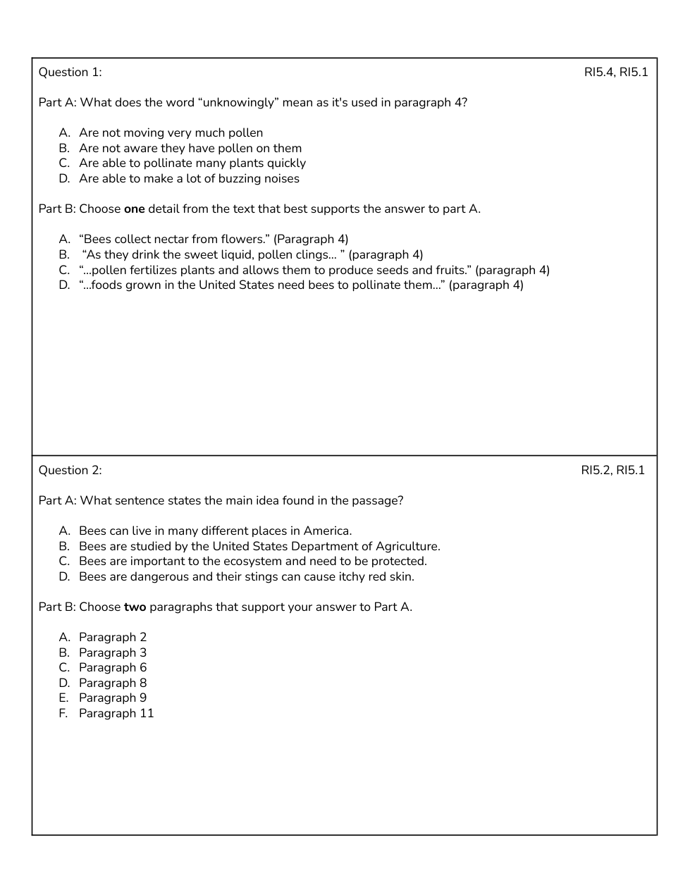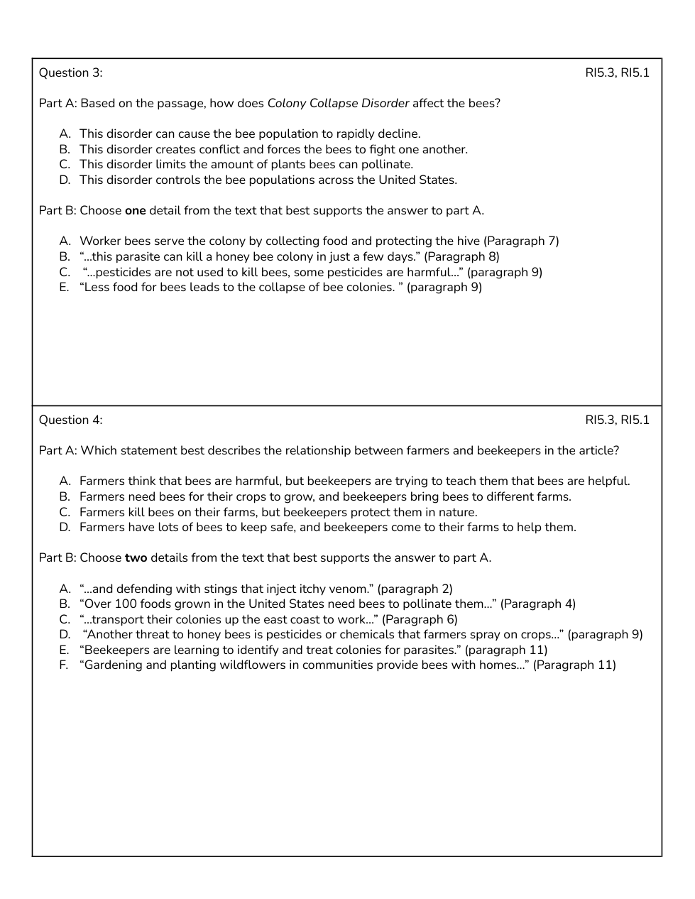TPT - 5th Grade Informational Assessment (Bees/Destination)