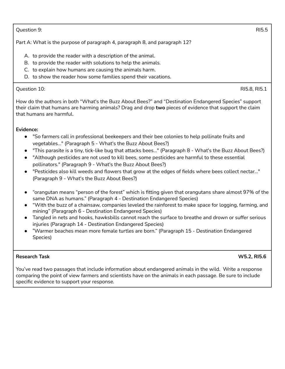 - “What's the Buzz About Bees?”Drag and drop two pieces of evidence that support the claim that humans are harmful.