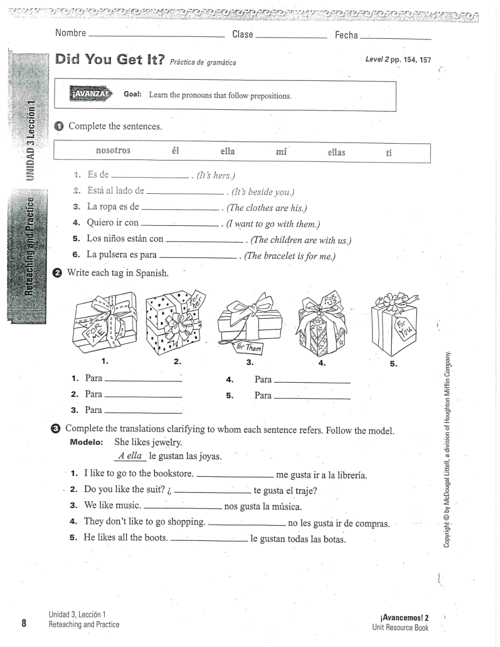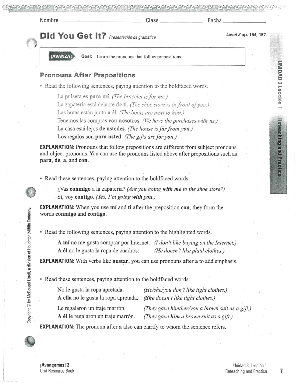 2: U3L1: Did You Get It Pronouns After Prepositions