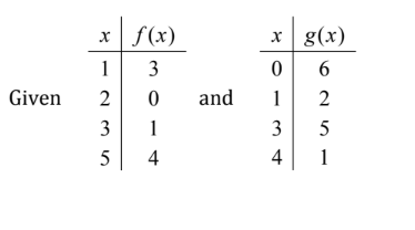 The values of (f+g)(1), (f\omicron~g)(3), and g^{-1}(1), respectively are: