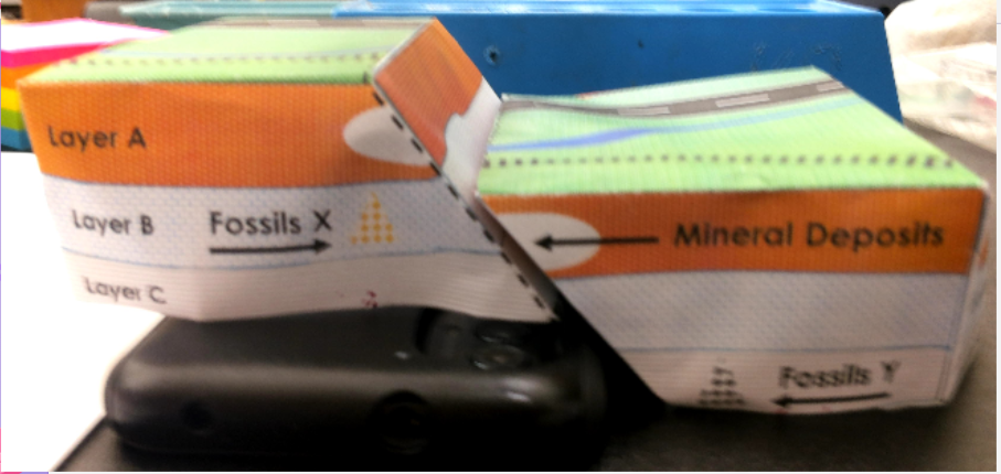 Draw 2 lines to connect the 2 layers that moved on this fault line.Top view