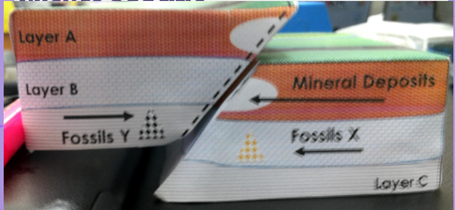 Draw 2 lines to connect the 2 layers that moved on this fault line.