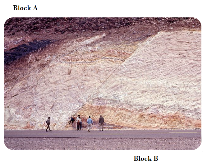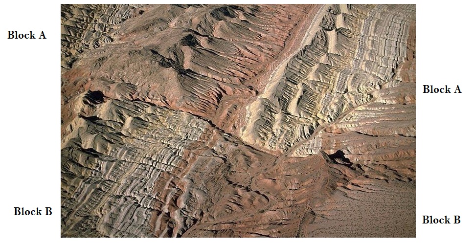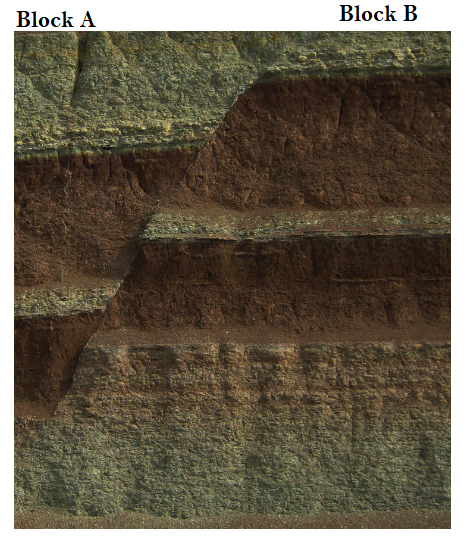Draw a line on the fault.Block B did not move. draw an arrow on the block that moved, in the direction it moves.