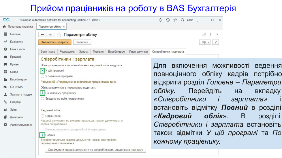 Автоматизація обліку за допомогою програми BAS Бухгалтерія