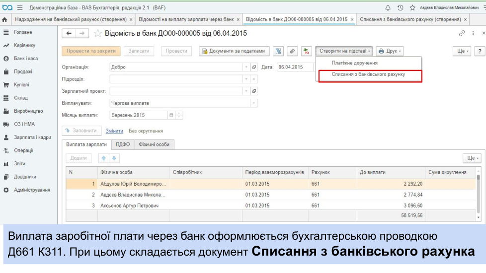 Який документ в програмі BAS Бухгалтерія формує проводку Д661 К311?