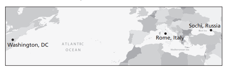 The 2014 Winter Olympic Games were held in Sochi, Russia. The distance between Washington, D.C. and Rome is about 4480 miles. The distance between Washington, DC and Sochi is about 5500 miles. What is the distance between Rome and Sochi?