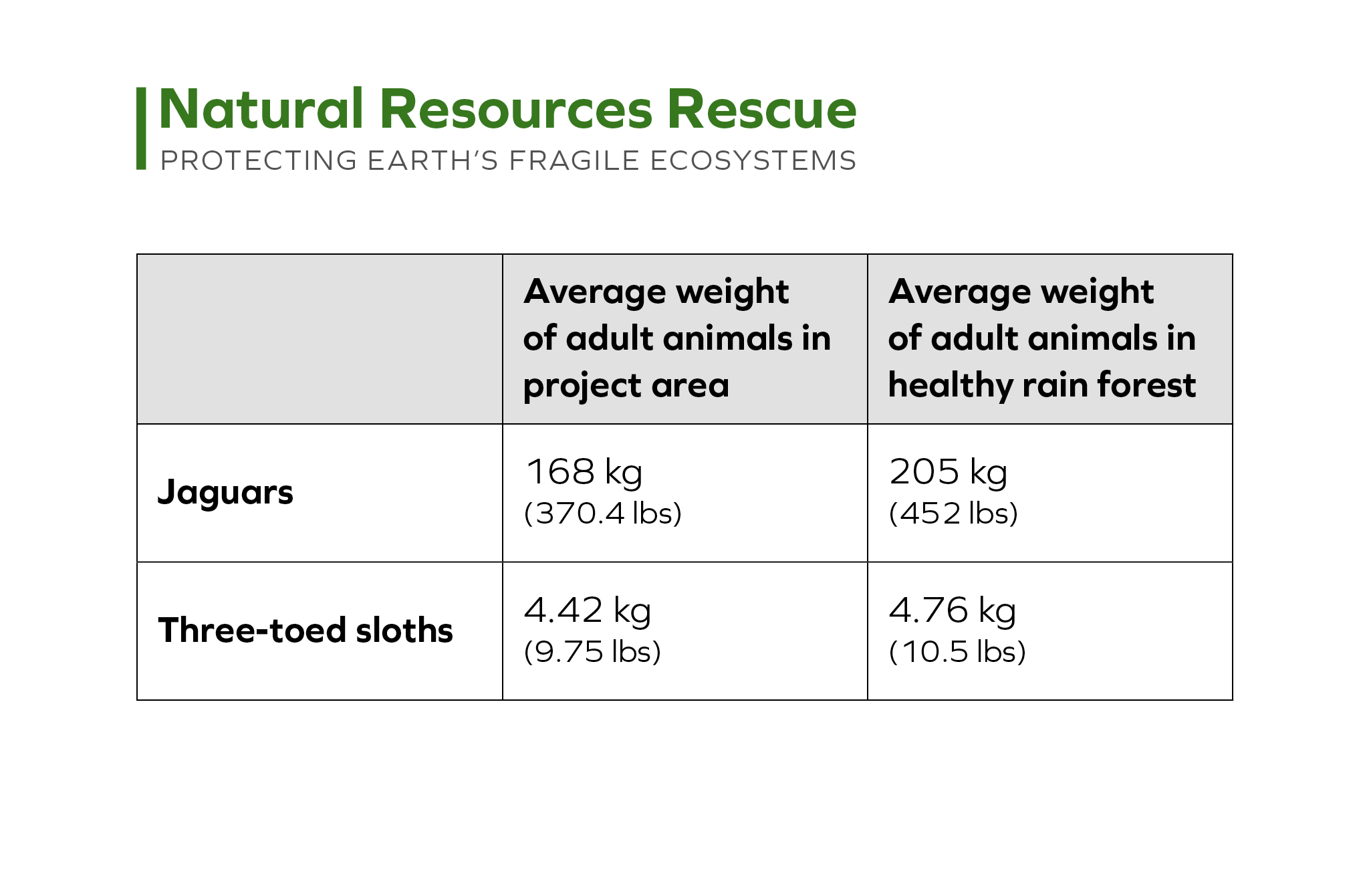 Which area has heavier jaguars and sloths?