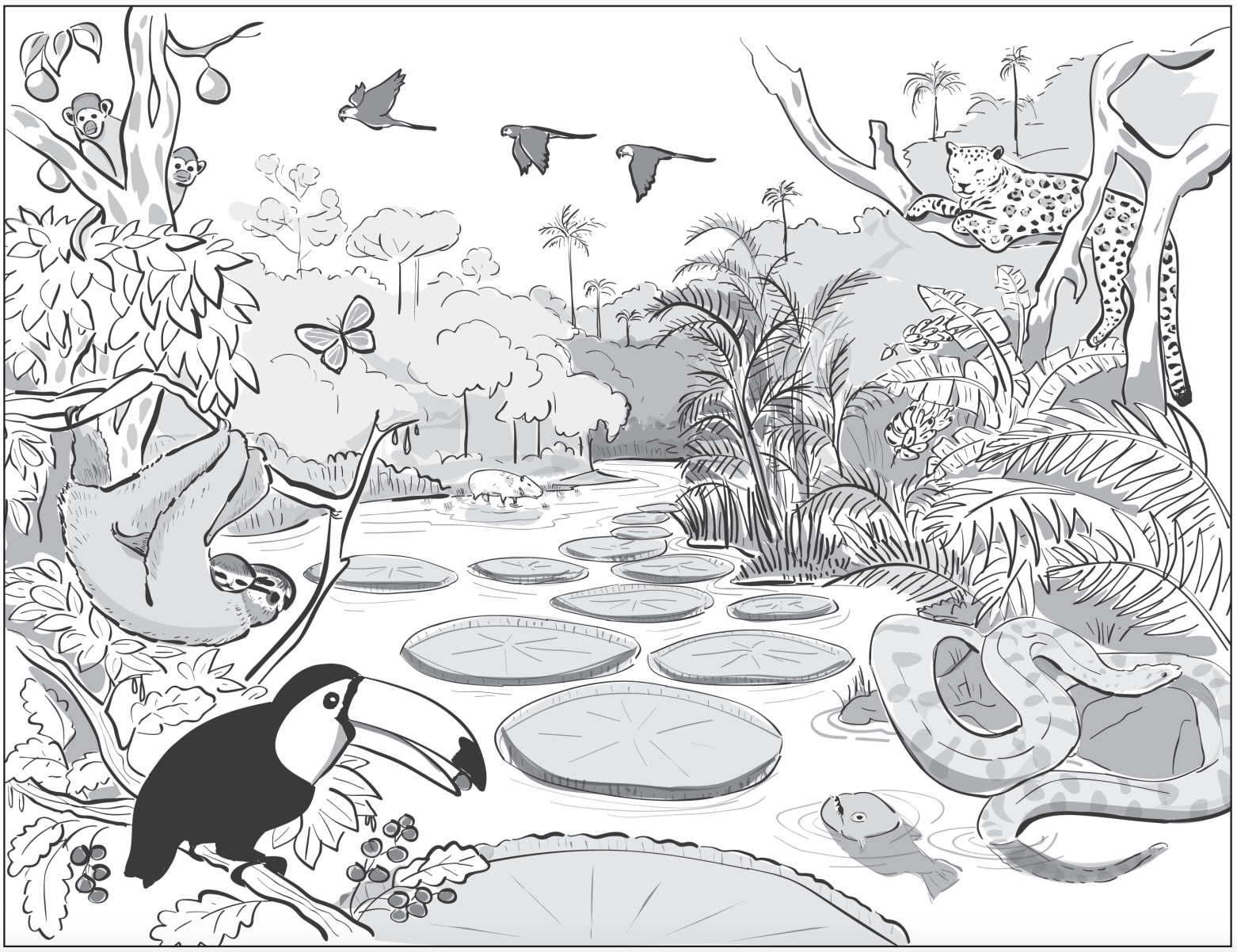 Write three observations listing things that you see in the rainforest ecosystem.