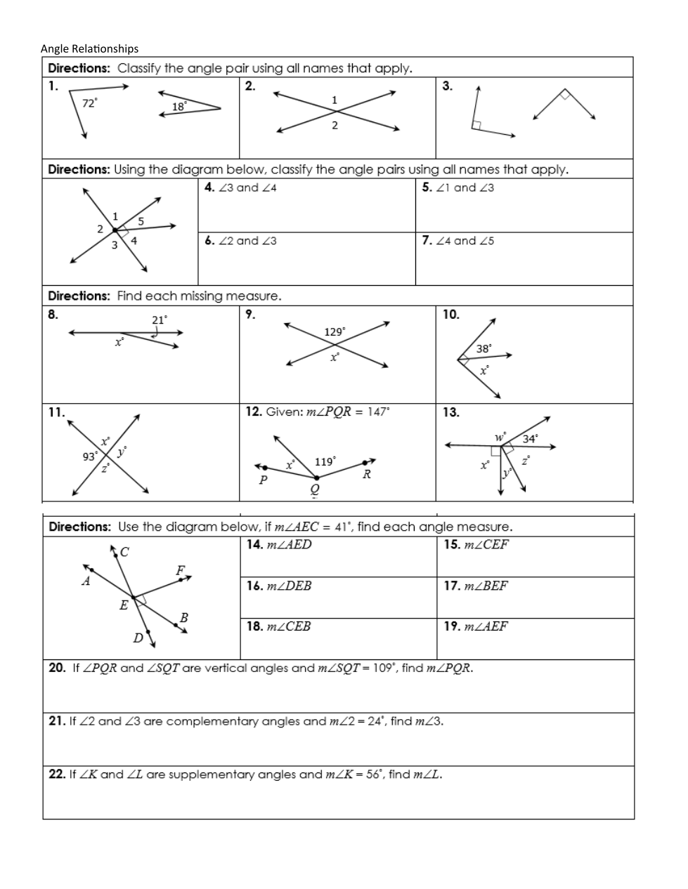 Homework 6B-2: Angle Relationships