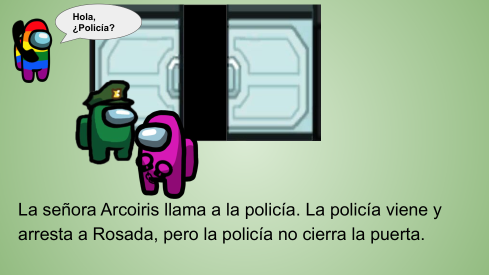 Draw what this phrase means: "la policia viene y arresta a Rosada."
