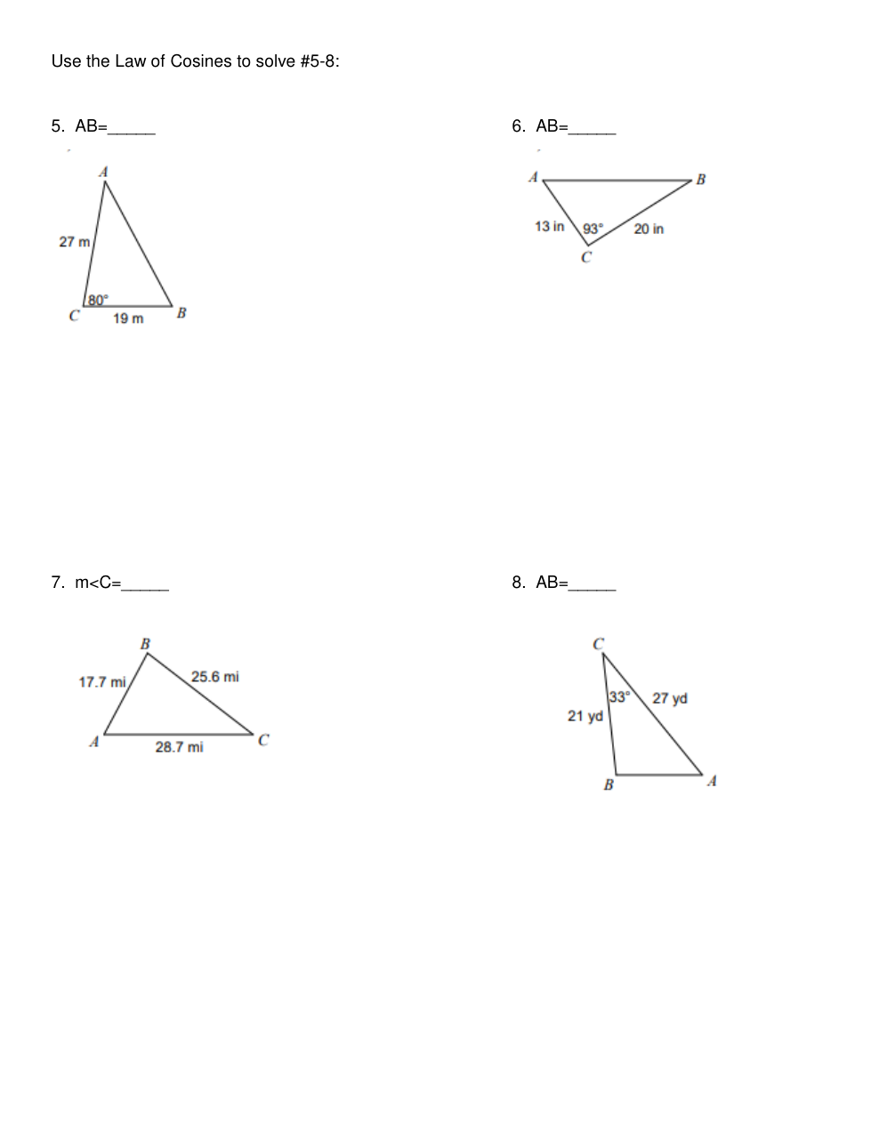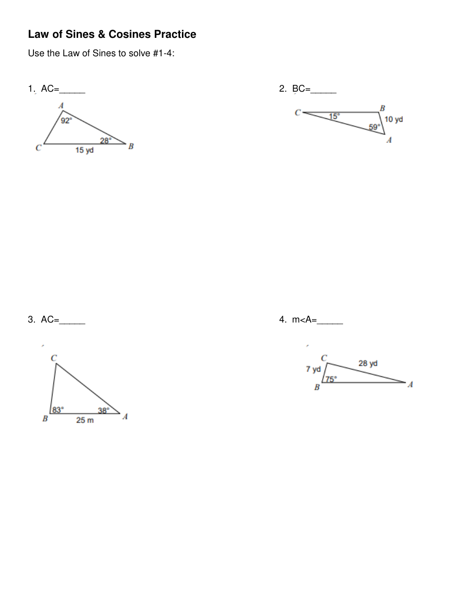 Law of Sines & Cosines Practice