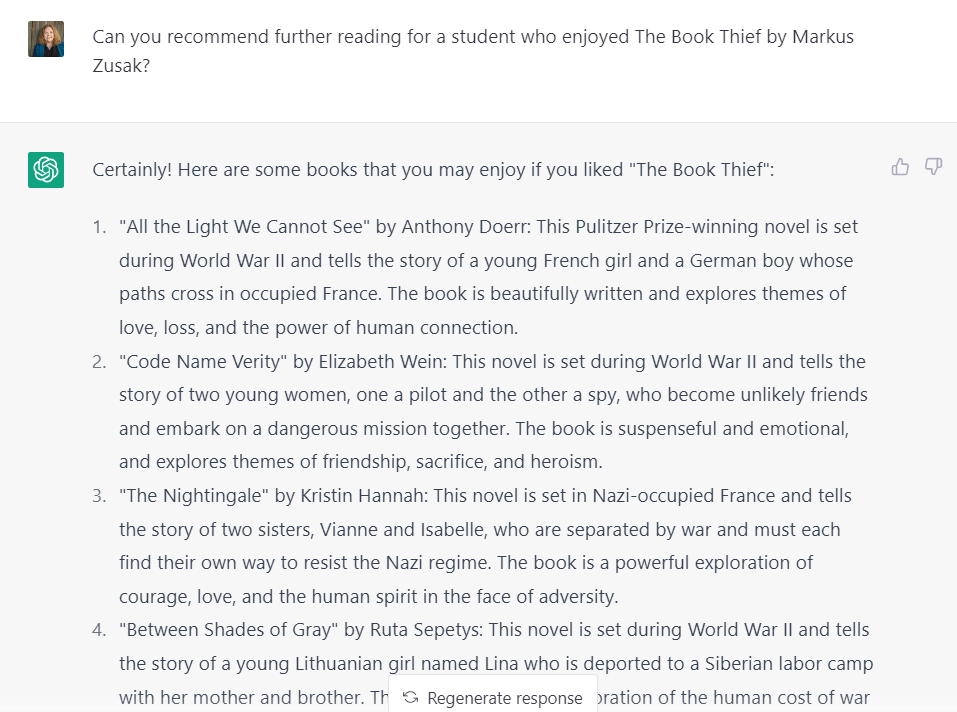 Can ChatGPT provide recommendations for further reading and learning?