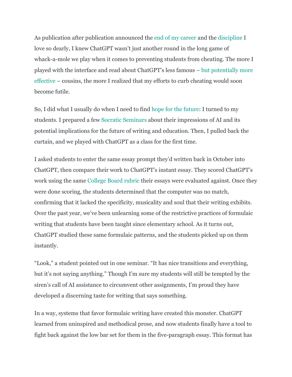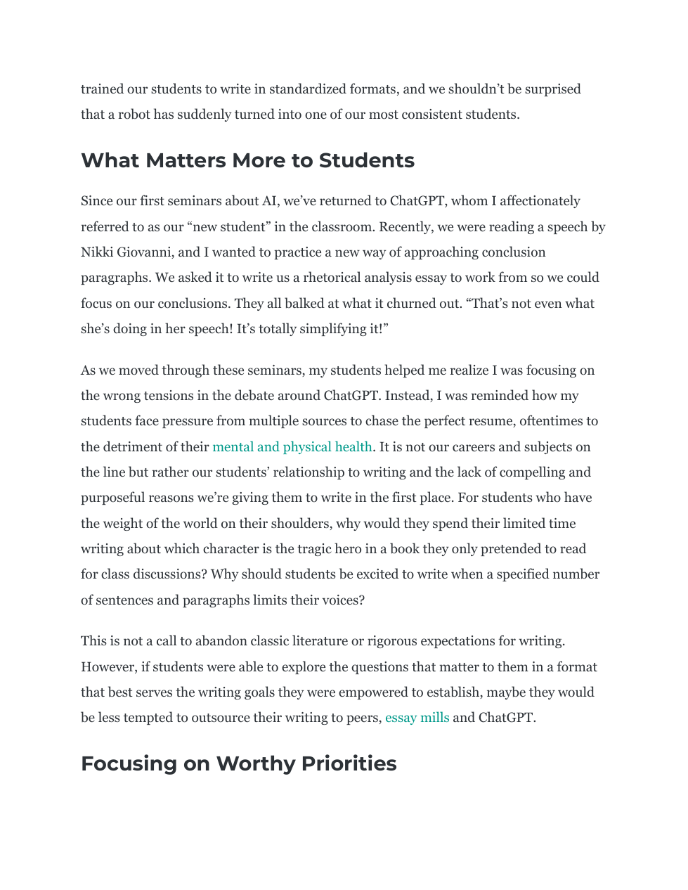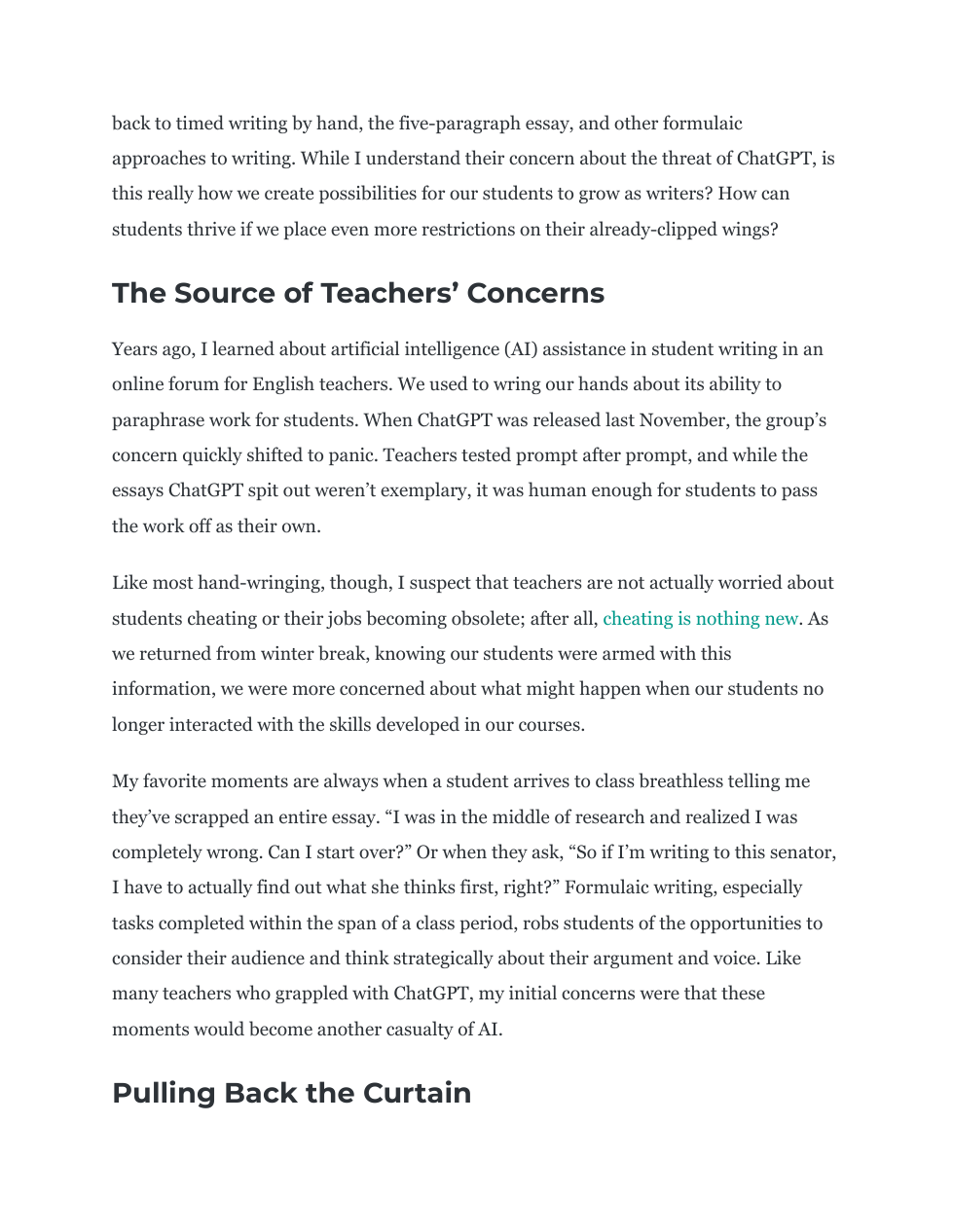 Two Articles on ChatGPT and Teaching/Learning