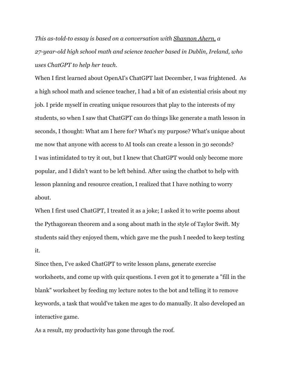 Miller, Matt. AI for Educators: Learning Strategies, Teacher Efficiencies, and a Vision for an Artificial Intelligence Future (p. 36). Ditch That Textbook. Kindle Edition.