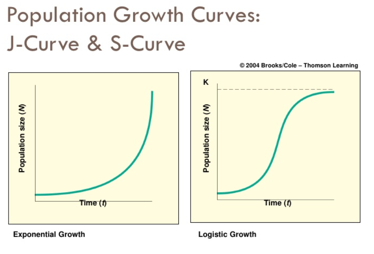 "J" curve population shown on a graph | arrow_right_alt | logistic growth |