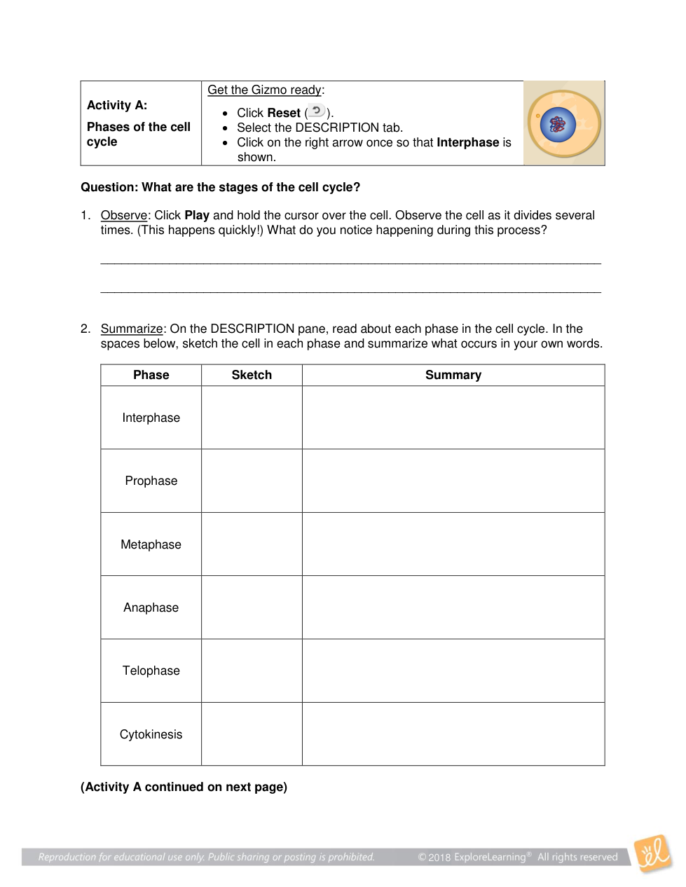 Section 2 - Mitosis Gizmo
