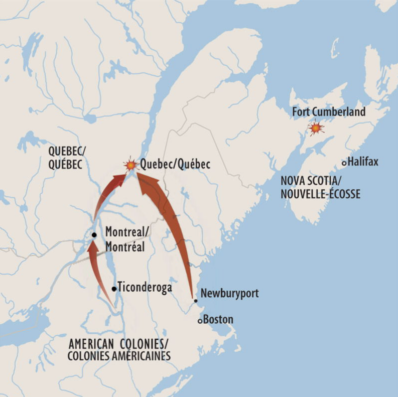 Les mots suivants sont obligatoires dans ta réponse- armées "continentales"- Province of Quebec- invasion