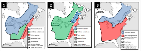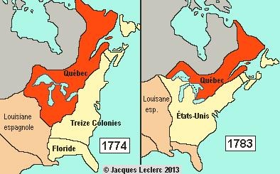 À l'aide de la carte, identifie 1 conséquence de la révolution américaine sur le territoire de la Province of Quebec.