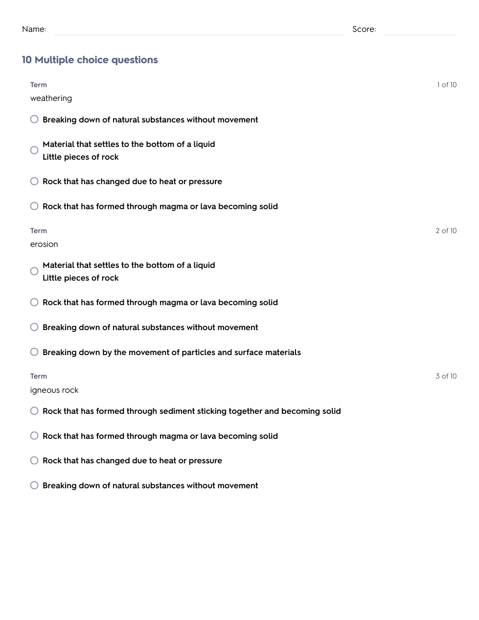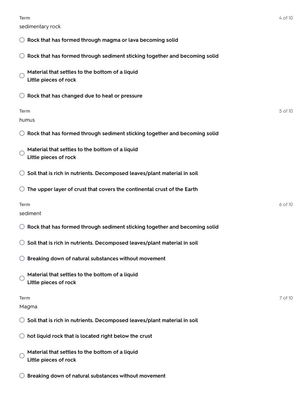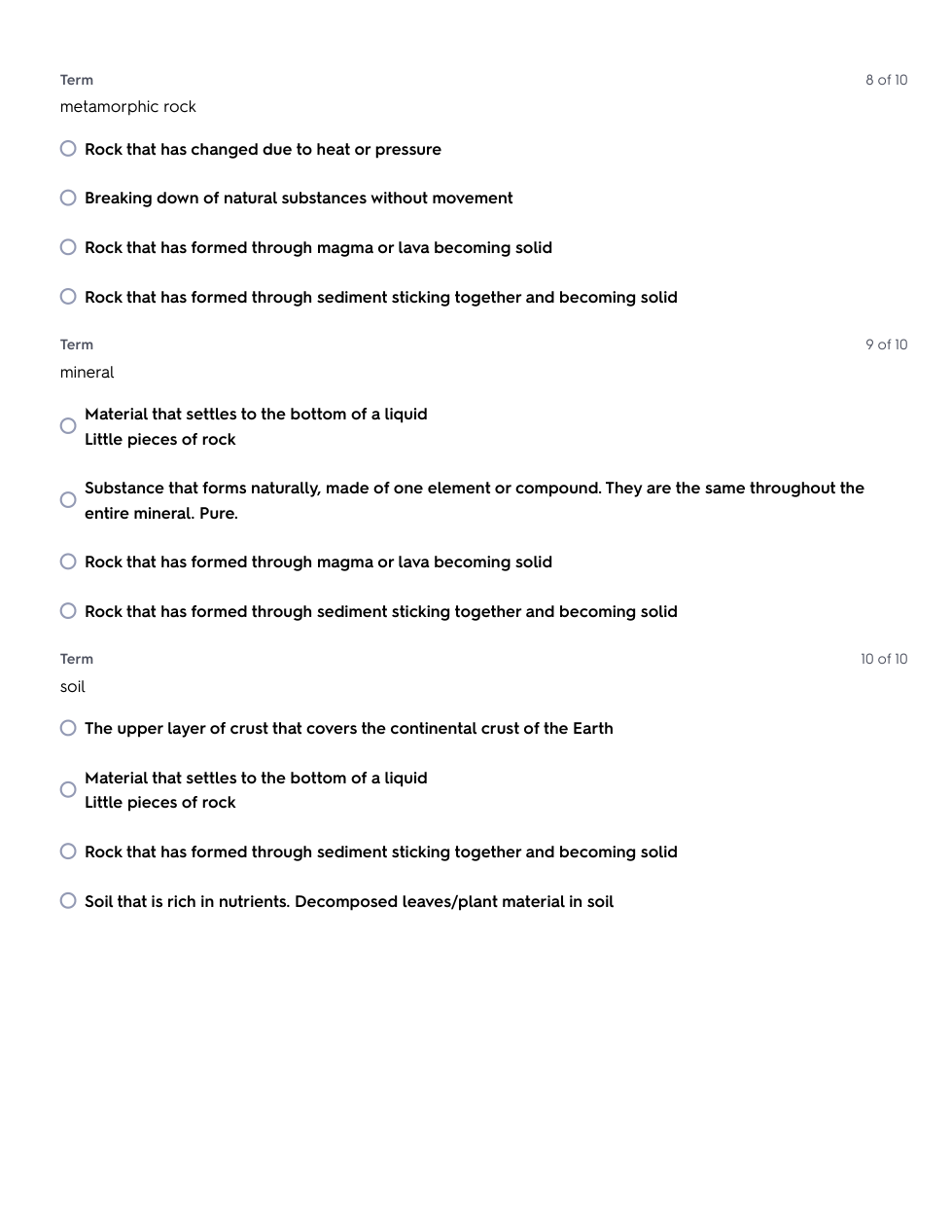 Vocabulary Test: Rocks & Soil