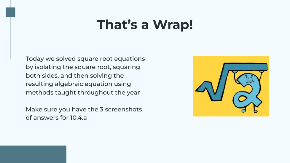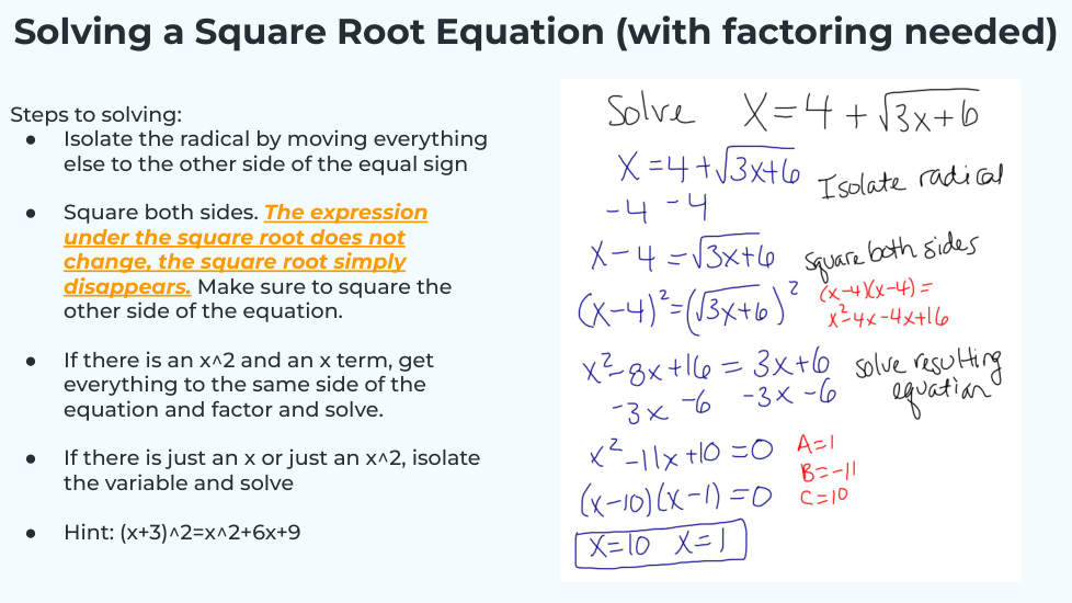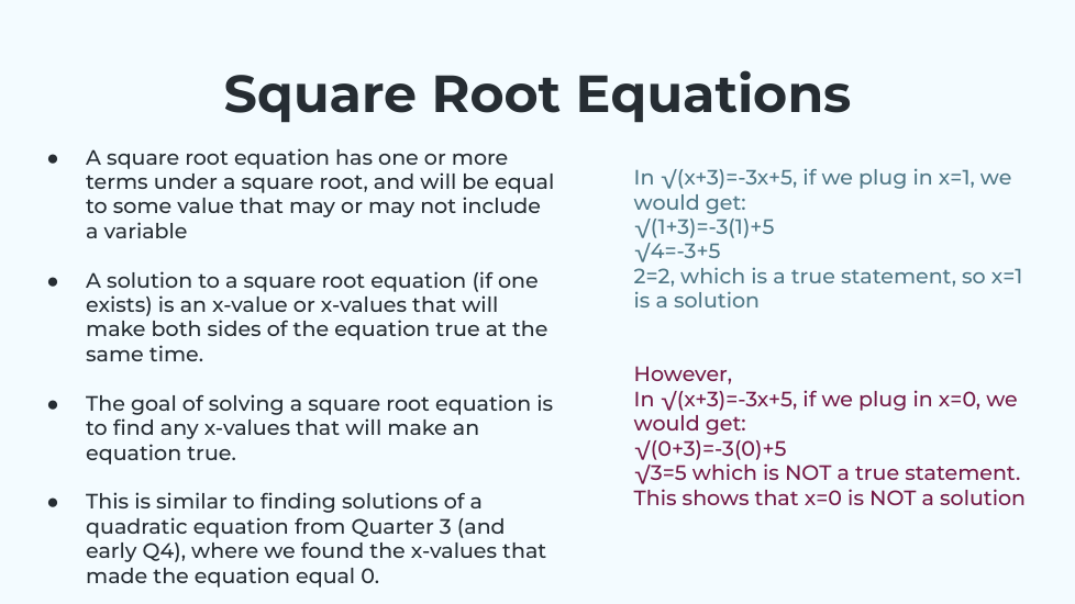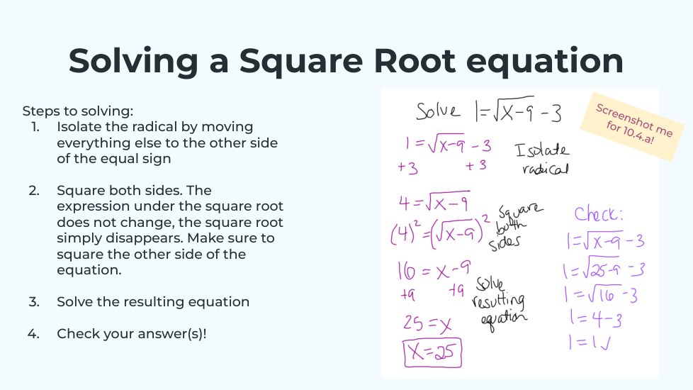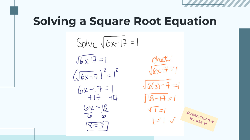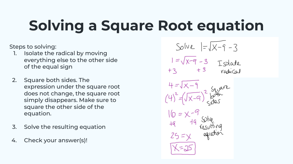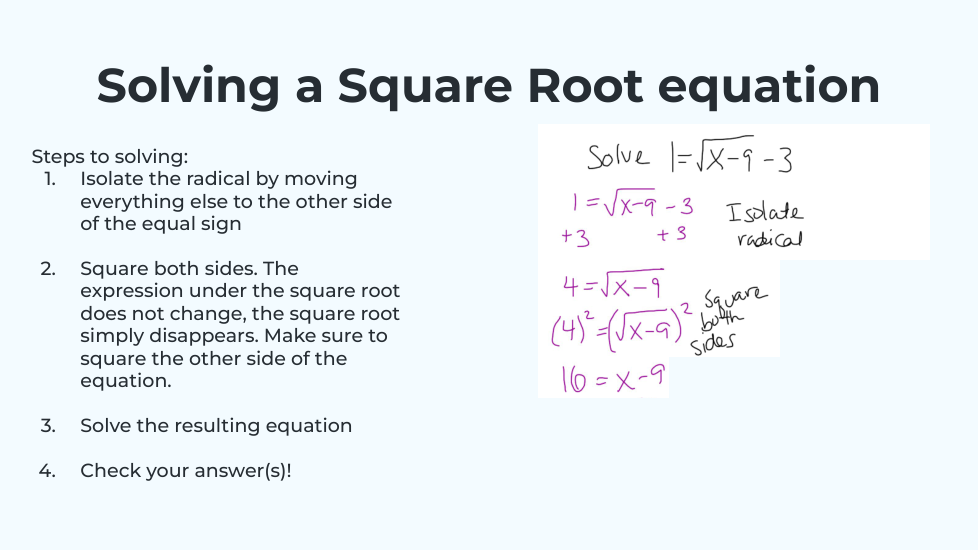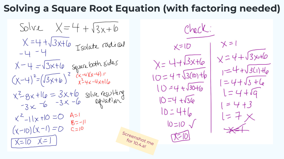 I know I need to check for extraneous solutions before moving on!