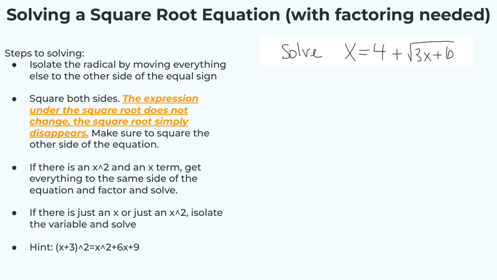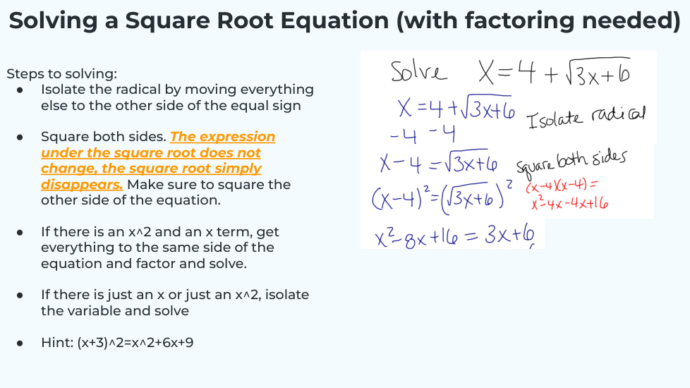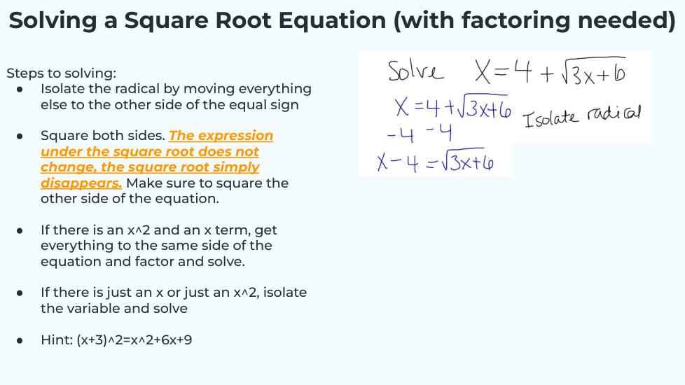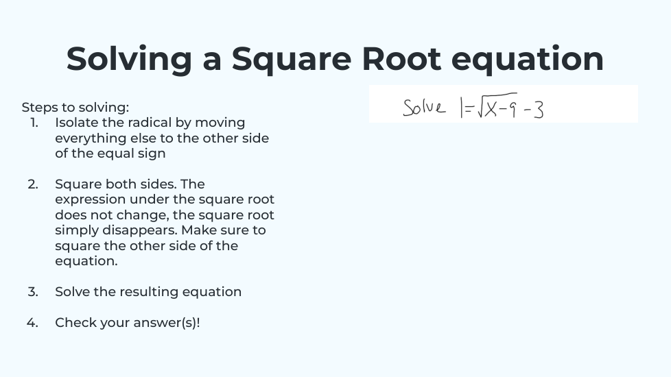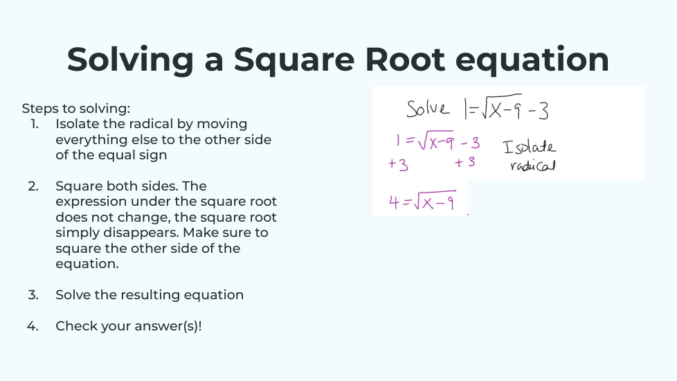 What will the equation turn into when you isolate the radical? _______